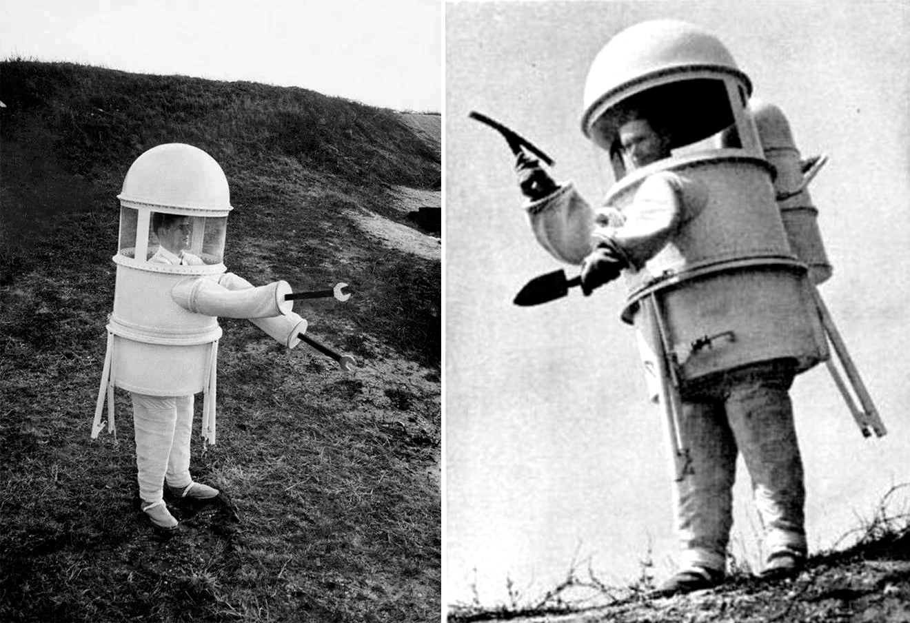A képen az elsőként bemutatott jelentkező, a Republic Aviation Corporation által tervezett „űrruha” volt. A százkilós eszközt a mérnökök apró lakásnak szánták: volt benne légkondi, vízraktár, sőt, még egy apró sütőlap is, hogy a derék űrhajós meleg ételt ehessen. Hogy aludni is lehessen benne, kihúzható, széthajtható állványokkal szerelték fel. Hogy, hogy nem, végül nem ez a verzió győzött a nagy NASA-versenyen. Pedig hát milyen jól lehetett benne kisásót és ablakpucolót használni...
