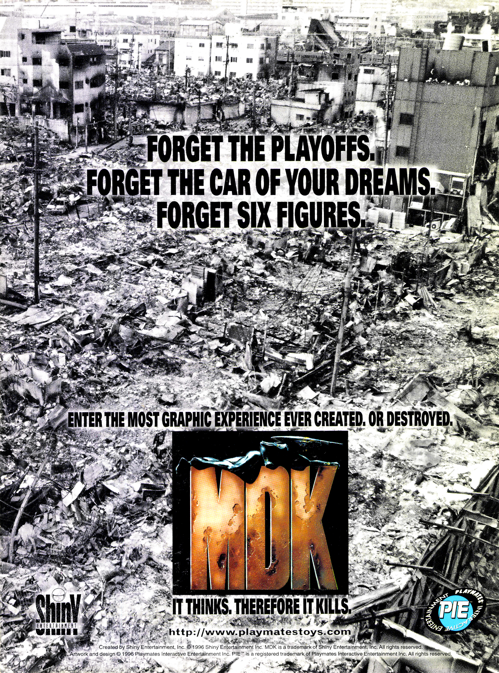 Rengeteg sajtófotót néztem át bombázások és természeti katasztrófák következményeiről, hogy megtaláljam az MDK e roppant ízléstelen hirdetésének origóját. A feladat sikertelenül zárult, de legalább a hangulatom visszafordíthatatlanul elromlott az estére.