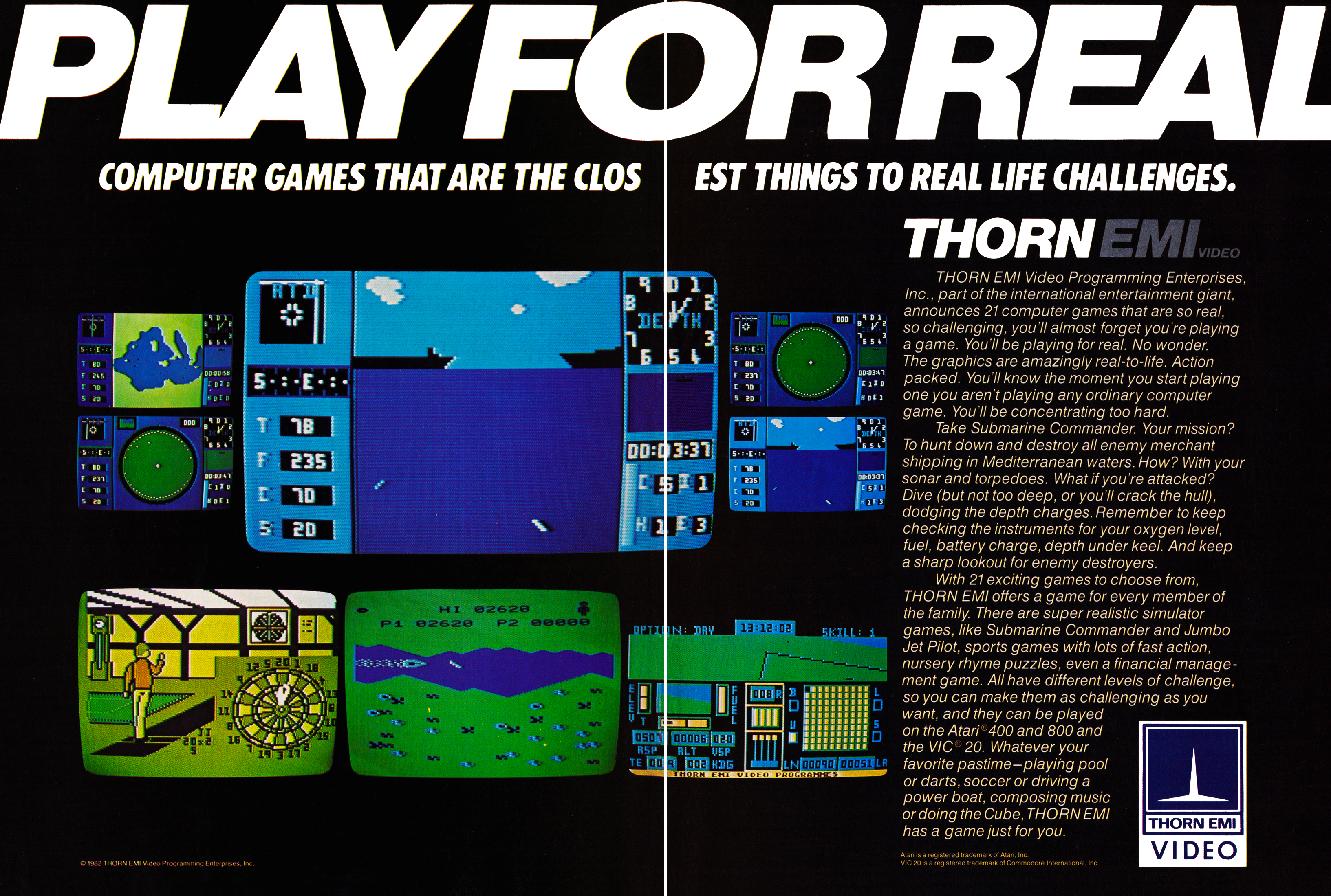 Az 1928-ban izzók gyártására létrejött Thorn Lightning, illetve az 1931-ben önállósodott Electric and Musical Industries 1979-ben olvadtak össze, és bár az új megavállalat keze előbb-utóbb minden szektorba belelógott, egyik kiemelt új projektjük a számítógépes játékvilág meghódítása volt. Vagy legalábbis ennek kísérlete, hisz az alig négy éven keresztül dolgozó új kiadó egyetlen emlékezetes programot sem tudott kiadni; olyannyira nem, hogy szoftvereik jókora része nem is maradt fenn. Igaz, aki a Submarine Commanderrel szeretne játszani, annak szerencséje van: a Dean Lock által fejlesztett kőkemény szimulátor három platformon (Atari 400/800, Apple II, VIC-20) is elérhető.