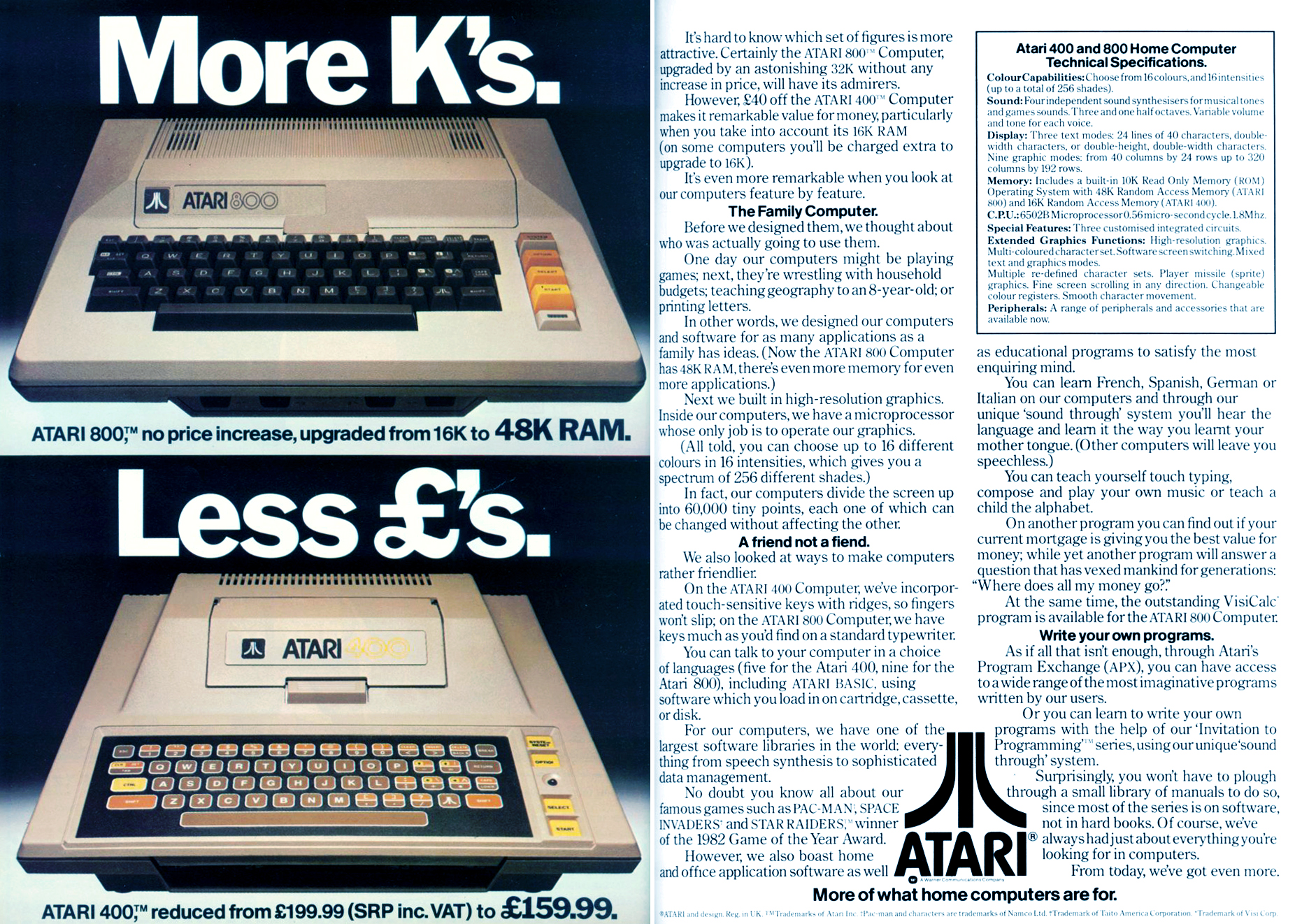 Bár 1983-ban az Egyesült Királyságban még nem is voltak erős riválisai, az Atari első 8-bites számítógépei mégsem tudtak lényeges piaci részesedést kihasítani maguknak. Amikor ez a hirdetés megjelent, a 48 KB-os ZX Spectrum ára 129 font volt, a C64 árát pedig a kezdeti 400 fontról a Commodore éppen leverte a 300, majd 250 fontra. Az így kezdődő árháborúban sok gyártó elvérzett, és az Atari ST megjelenéséig lényegében ez az amerikai cég is eltűnt az európai piacról.
