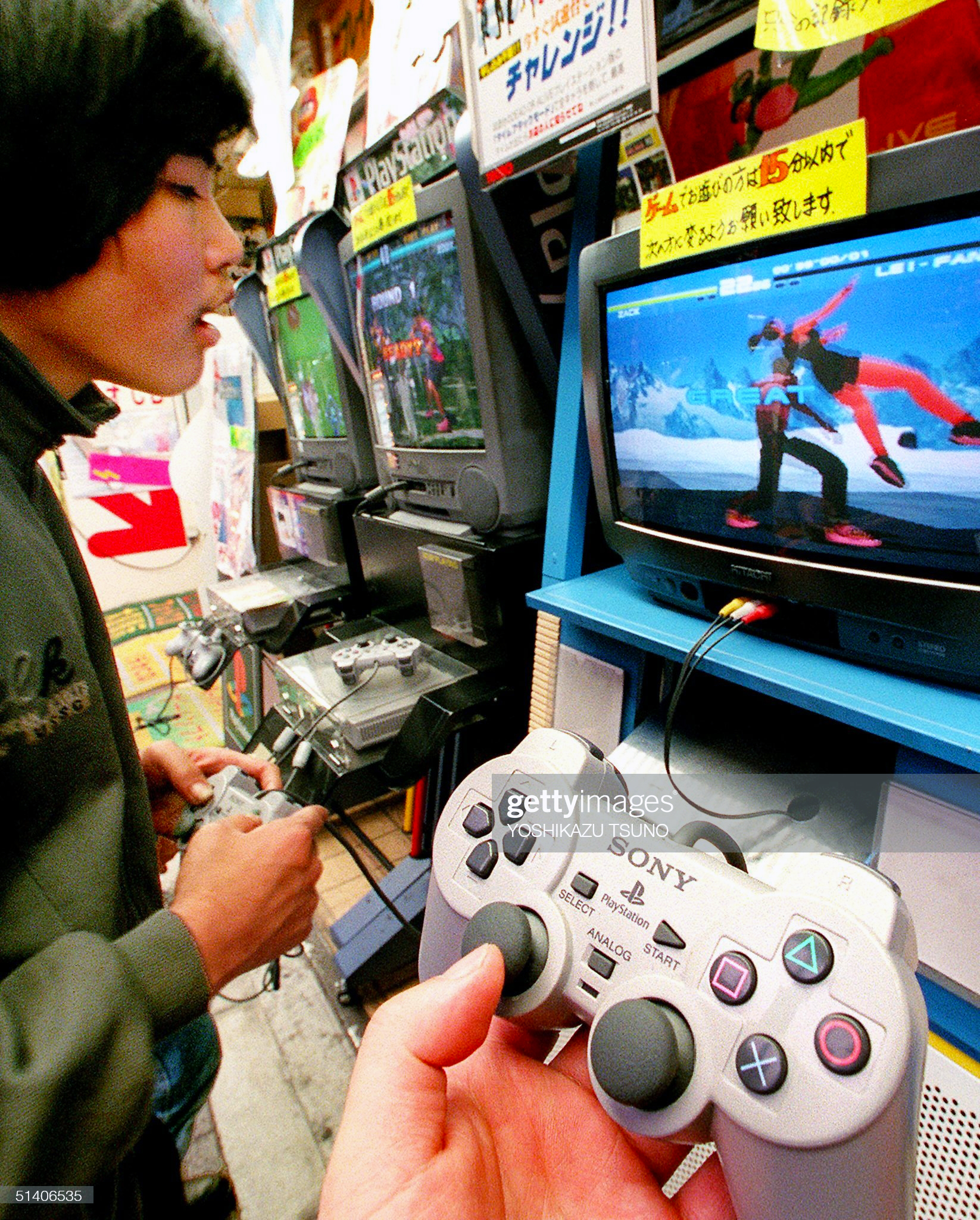 Akihabara egyik játékboltjában valaki az első Dead or Alive demójával játszik.