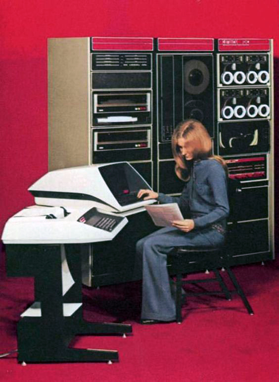 A mainframe-ek népszerűsítésére készült reklámfotókon keresztül nem csak a technológia fejlődése követhető nyomon, de a női divat alakulása is. Ez a hirdetés például a PDP-11 relatíve parányi méretein túl az 1970-es trapézgatyás farmerkorszakot is remekül prezentálja.