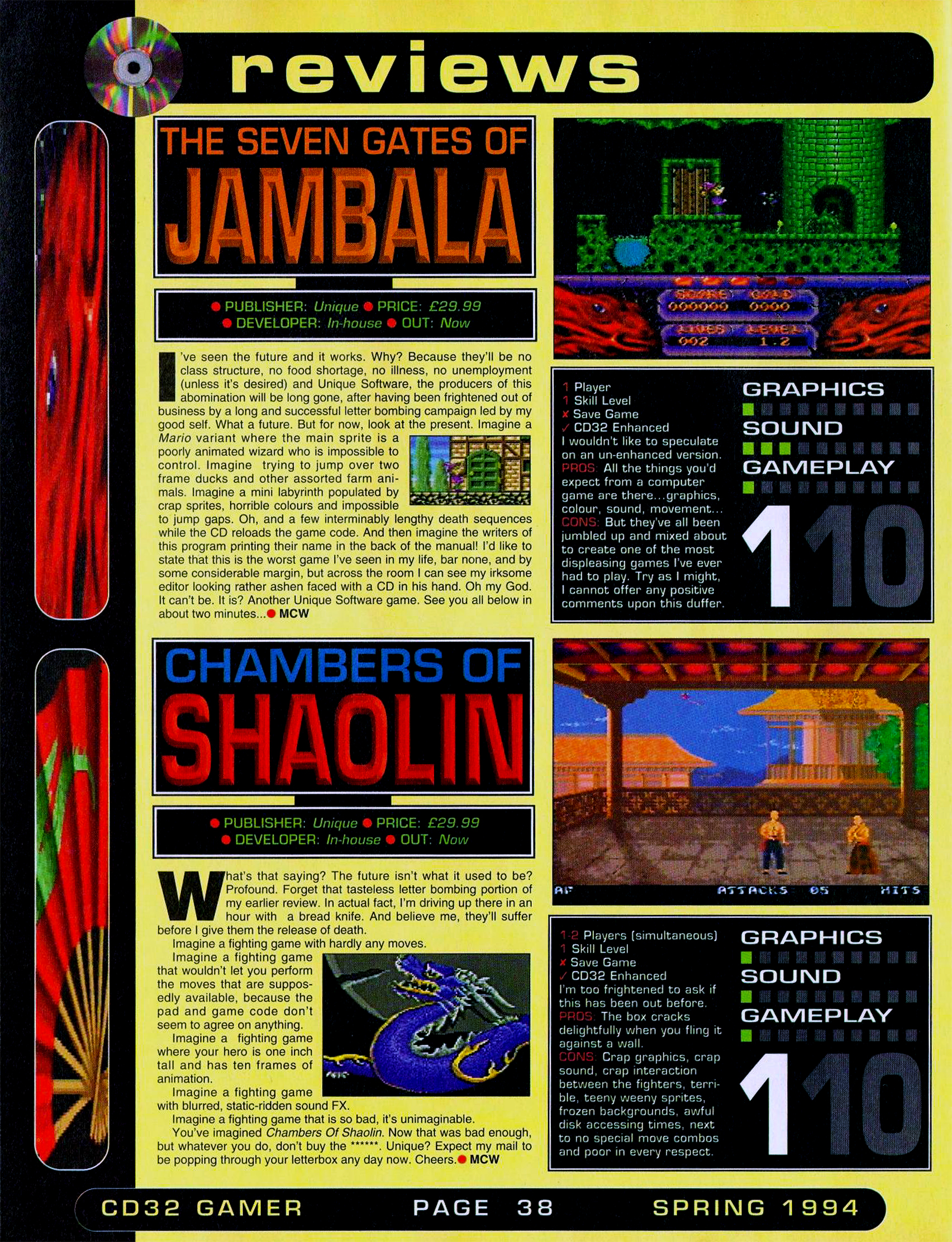 Az egyetlen platformra koncentráló újságok általában igen komoly fanatikusokat alkalmaznak, akik képesek választott gépükért akár tűzbe is tenni a kezüket. Még ez sem volt elég azonban, hogy az Amiga CD32 borzalmas játékkínálatának legmélyebb szennyével megbirkózhassanak a kollégák, és újságjuk minden hozsannázás mellett is kiosztott két minimumosztályzatot az első számban. Tegyük hozzá: abszolút megérdemelten!