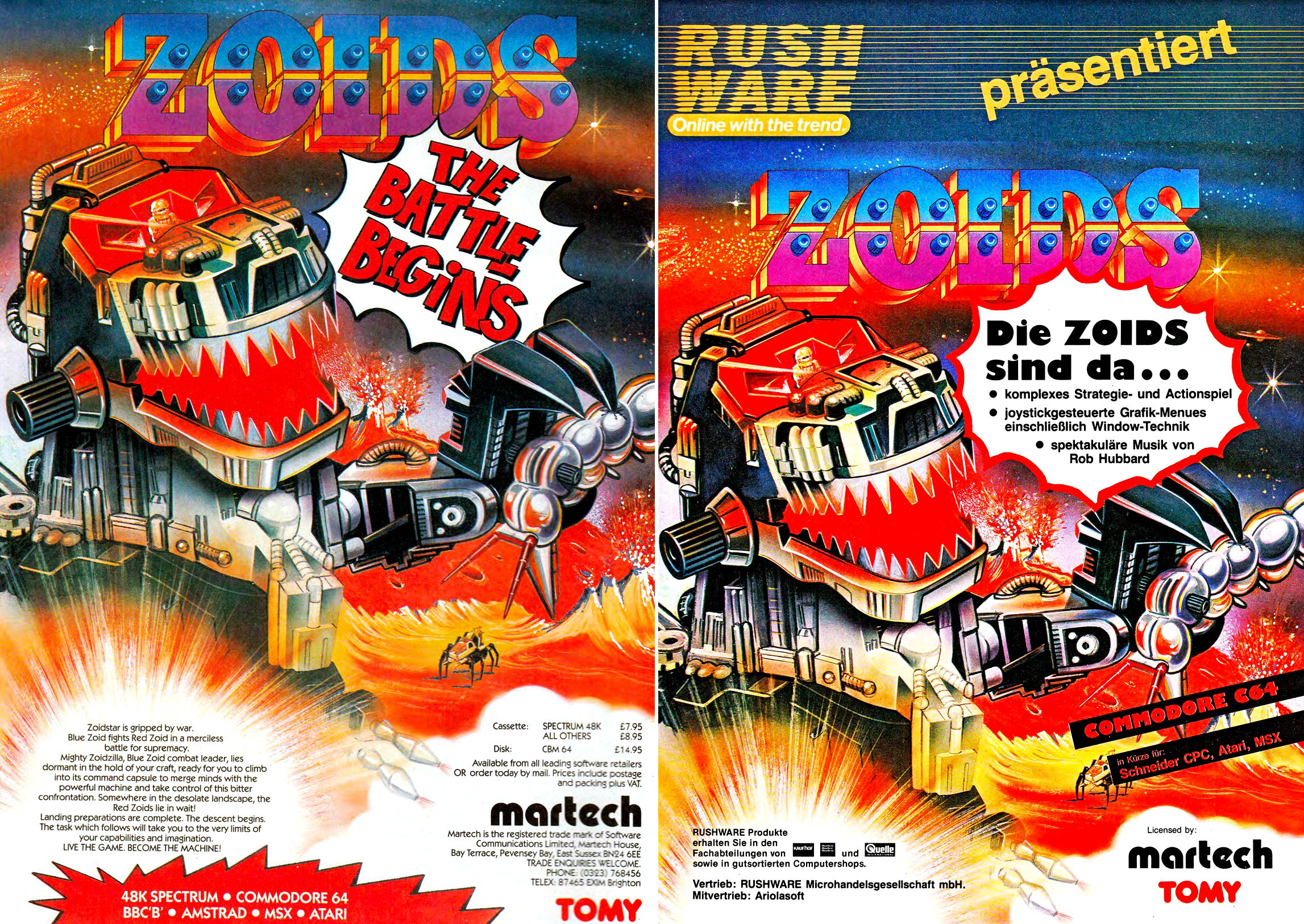 Az első német játékmagazinok megjelenésekor a honi játékpiac olyan kezdetleges állapotban volt, hogy a disztribútoroknak még lokalizált reklámokra sem volt erejük. Ennek tökéletes példája a Zoids hirdetése az ASM magazinban: az első számba egy annyira brit reklám került bele, hogy még az árak is fontban voltak megadva – három hónappal később azonban már lecserélték a szövegeket és a platformokat. És ha már itt tartunk, számomra most derült ki, hogy Németországban az Amstrad CPC-t Schneider CPC-ként forgalmazták...