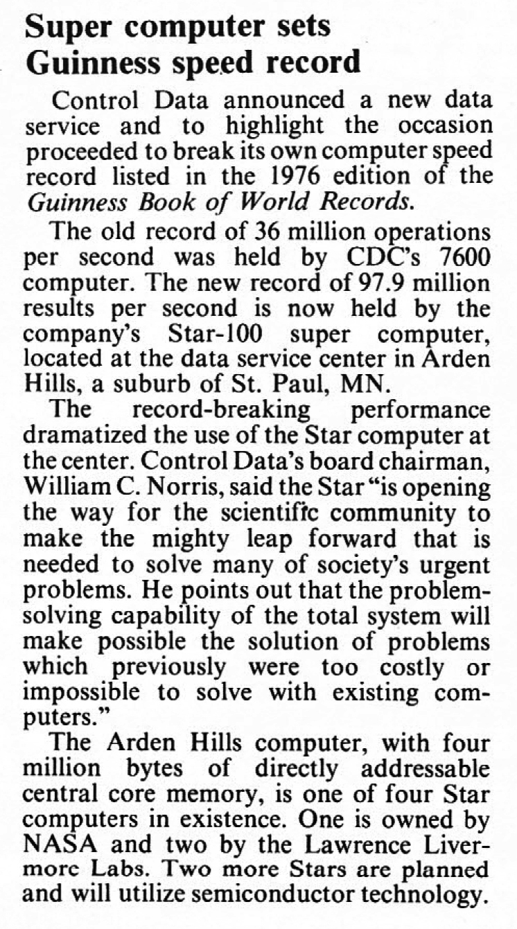 Bár a cikk már megjelenésének pillanatában elavult volt, ez talán megbocsátható: az információáramlás sebessége a hetvenes évek végén igen alacsony volt. 1976 végén ugyanis már üzemelt az első Cray-1 szuperszámítógép, amely a Star-100 által felmutatott 98 megaflops helyett 160 megaflops sebességgel számolt. A modern konzolok teraflops-teljesítményét mindenki ismeri, az abszolút rekorder pedig a japán Fugaku, a maga 442 petaflopsos számítási teljesítményével.