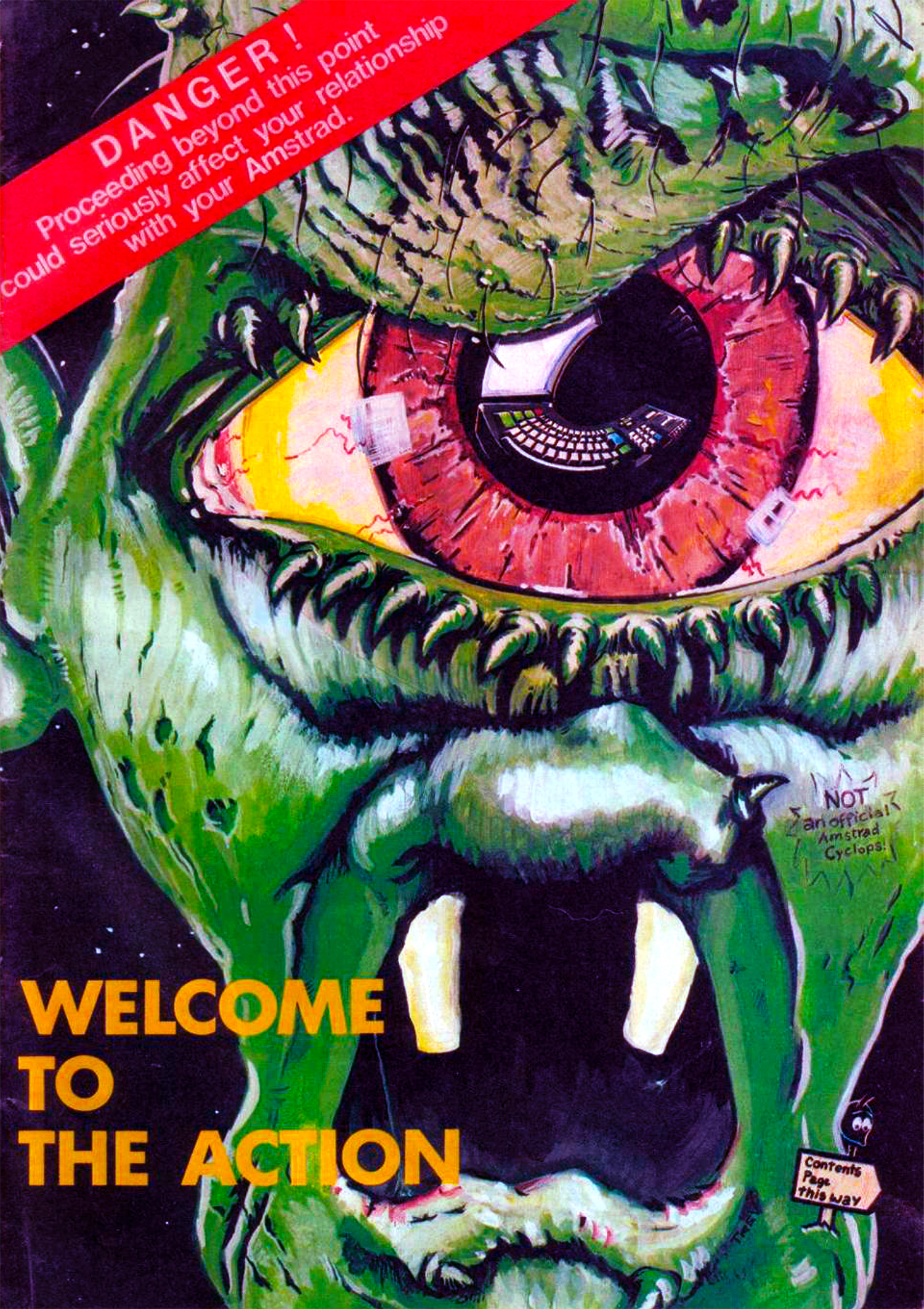 Amikor a szerkesztőség kitalálta, hogy új újságuk címlapján a „130 játékot vettünk szemügyre” cikk kapja a főszerepet, berendeltek egy ehhez illő borítót. Az ismeretlen kilétű grafikus a mellékelt ábrát szállította ehhez, és ez feltehetően pöttyet horrorisztikusnak bizonyult az induló újság első címlapját tervező szerkesztőknek. Kis átépítést követően a címlap cenzúrázott verziót kapott hát, és a kapafogú zöld küklopszot a belívre száműzték, ahol a kiválóan elnevezett Amsyclopedia nevű rovatot vezette fel.