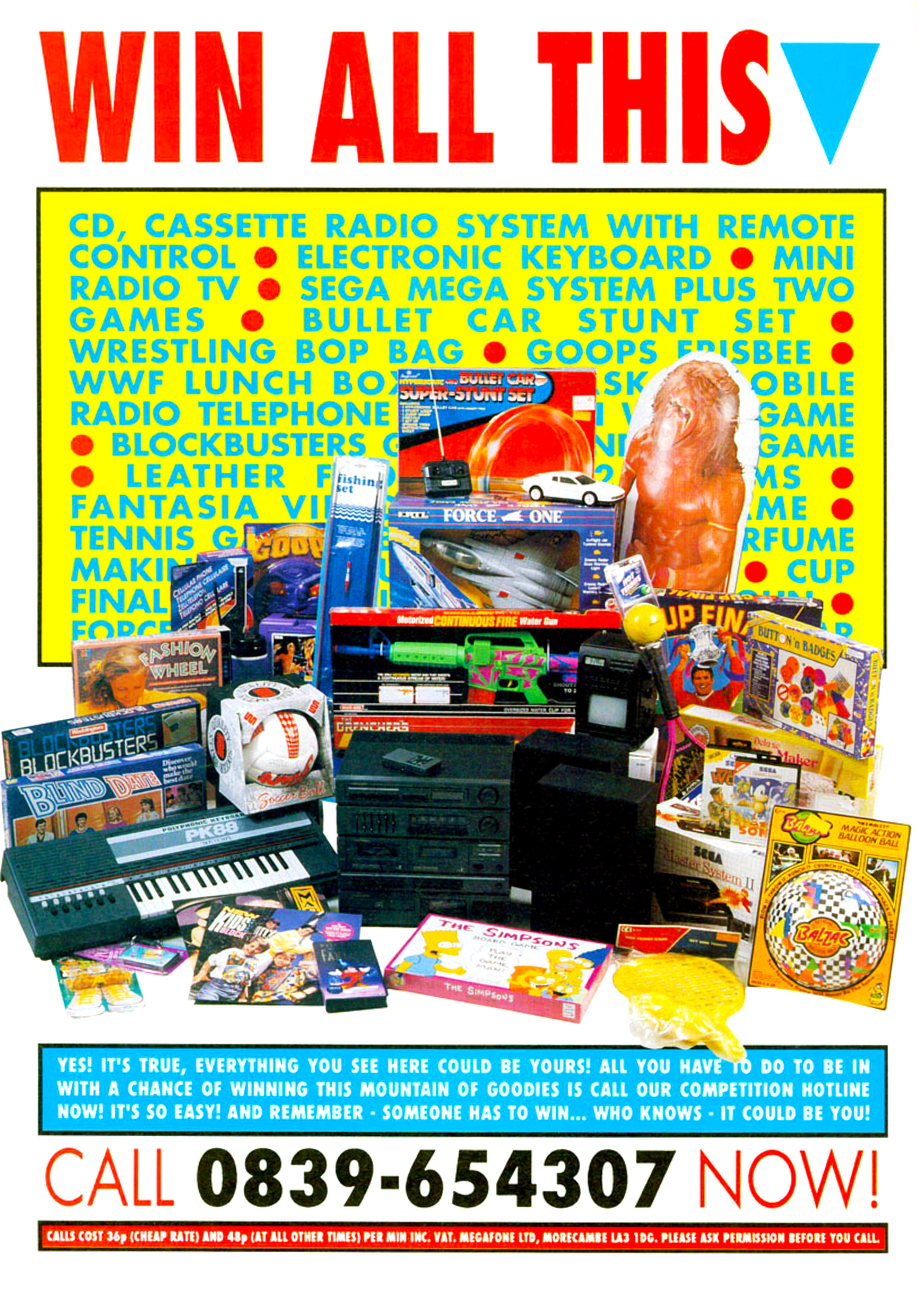 Álomszerű telefonos nyereményjáték 1992 tavaszáról az egyik nagy Amiga-magazinból. Igaz, a Master System nevét nem sikerült helyesen leírni, de amennyiben tényleg kisorsolták ezt a pakkot, a nyertes feltehetően nem törődött ezzel az aprósággal...