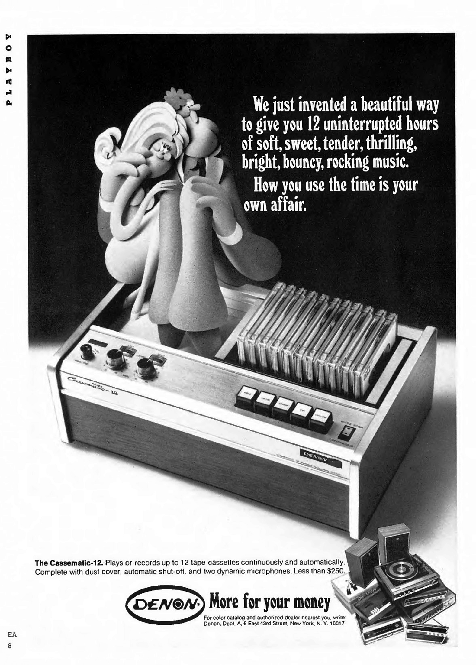 A hetvenes évek elején a Denon még a maratoni szexcsatákhoz is készített hardvert: ez a magnó 12 kazettát tudott külön teendő nélkül egymást követően lejátszani.