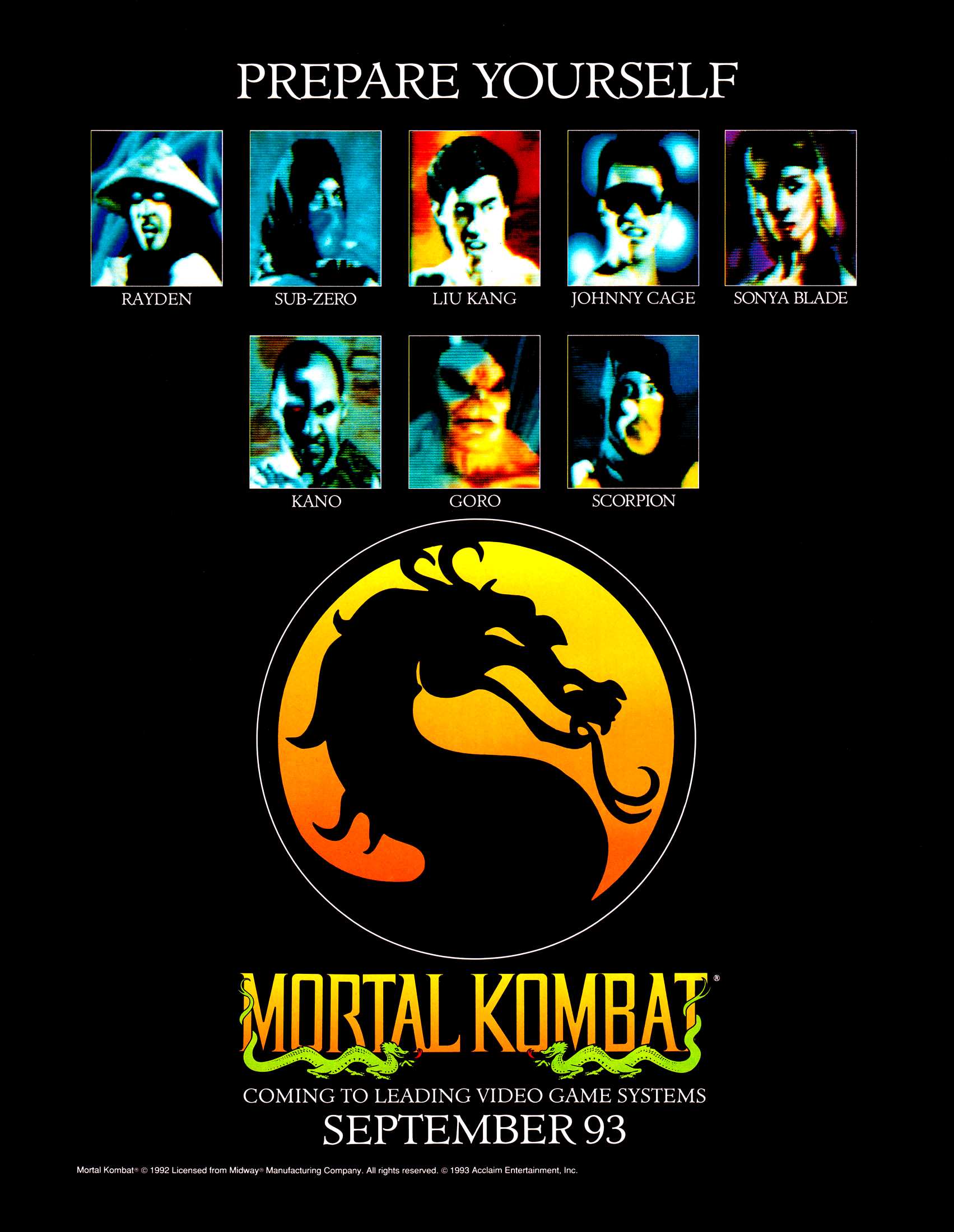 A Mortal Kombat sárkányfejes ikonja 1993-ban volt olyan ismert, hogy lényegében semmi másra nem volt szükség egy hirdetésben. Mi is koncentráljunk inkább arra, hogy Raiden nevét nem sikerült rendesen leírni – pontosabban a konzolos verziókat gondozó kiadó, az Acclaim nem először és nem utoljára belenyúlt a helyesírásba.