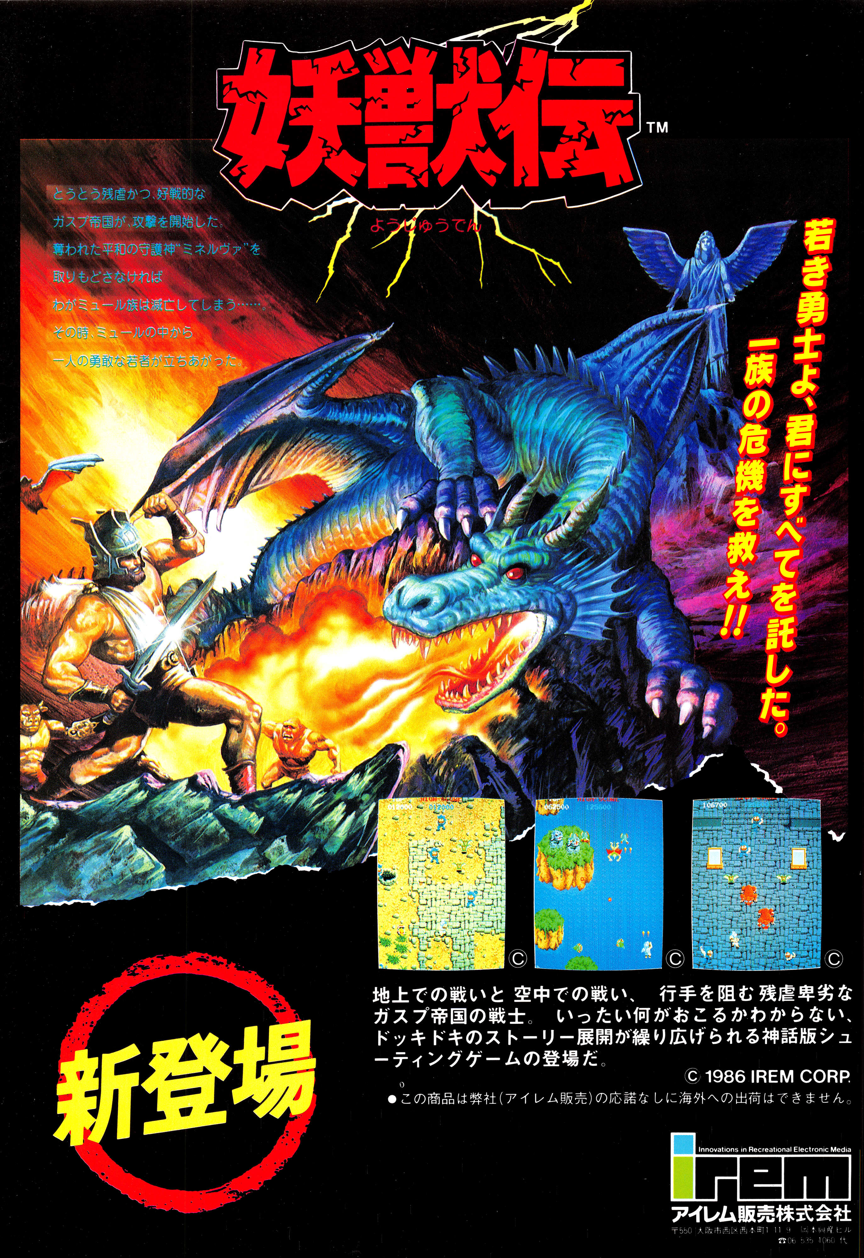 Az első R-Type megasikerét követően a Irem igazi shoot ’em up-tömeggyárrá vált, így cseppet sem meglepő, hogy néhány játékuk megmaradt az ismeretlenség homályában. Ez a sors érte el az 1986-os Youjuudent is, amely nem hozott annyi hasznot a japán játéktermekben, hogy megkapta volna a nyugati megjelenés jutalmát. A műfaj íratlan szabályaitól eltérően itt nem űrhajót kellett irányítani, hanem a képen is látható szakállas-kardos barbárt, aki sisakjából lövöldözi kevéssé hatékony varázslatait.