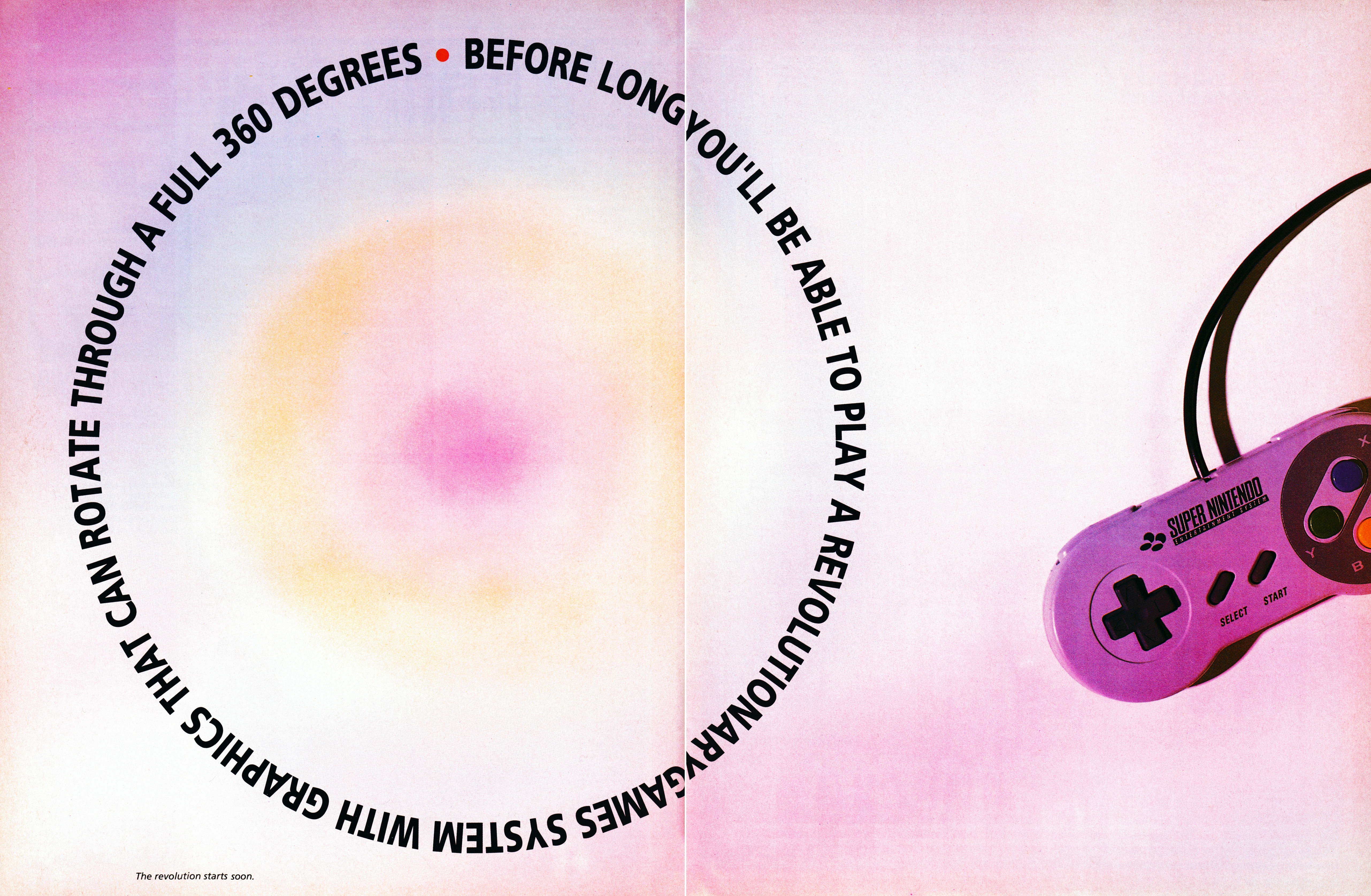 Az első európai SNES-reklámok lényegében az akkor már kapható és ekkorra nagyszerű játékfelhozatalt kitermelő Mega Drive vásárlásától akarták eltántorítani az újgenerációs játékélményekre vágyókat. Ez a brit hirdetés például a Sega konzolján hardveresen nem támogatott sprite-forgatási effekt felvillantásával tesz próbát, ami szerintem így, képek nélkül magyarázgatva jó érvnek semmiképpen nem nevezhető...