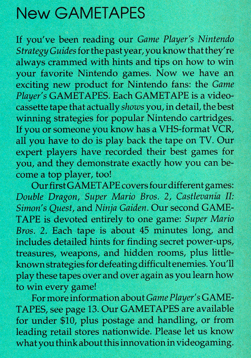 Amikor nemhogy YouTube nem volt, de még internet sem jutott az átlagembernek, már akkor is léteztek végigjátszást segítő videók – éppcsak ezeket pénzért, VHS-kazettán árulták az újságok. Bár ez a műfaj Amerikában is létezett (ahogy a mellékelt ábra is mutatja), de Japánban volt igazán piaca. Ott a népszerű verekedős játékok és a shoot ’em upok kaptak tucatszám ilyen videokazettákat, akár karakterenként és pályánként többet is, így tanítva a magasszintű játékot az amatőröknek.