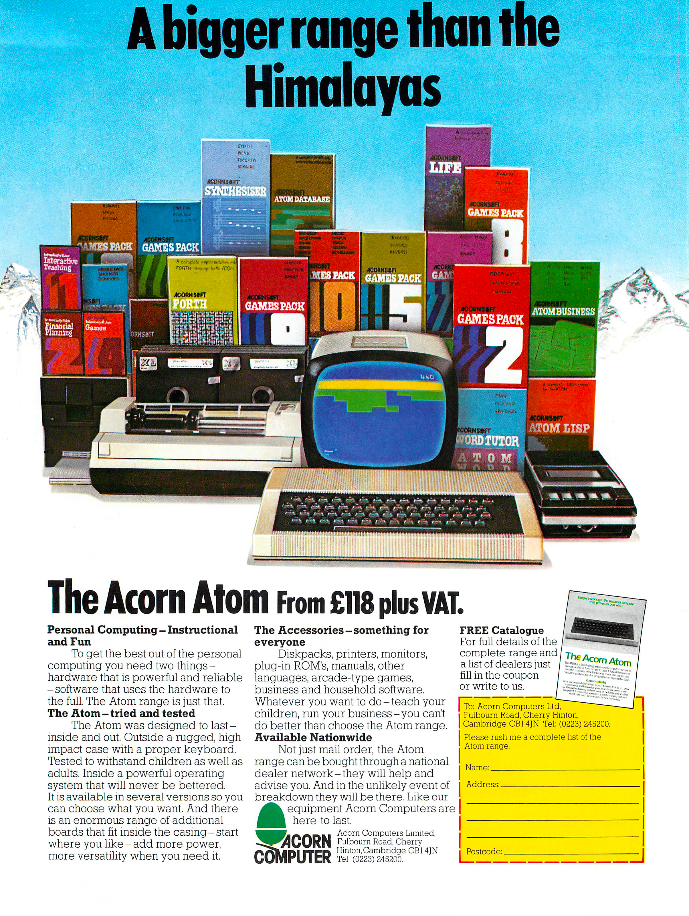 Az Atom játékkínálata sajnos inkább a Wycheproof-csúcshoz hasonlítható: az összesen tíz darabból álló Games Pack-sorozat (bennük olyan eredeti játékok, mint a Breakout, az Asteroids, a Star Trek, az Invaders vagy a Wumpus; természetesen mind engedély nélküli verziók) mellett legfeljebb 30 önálló játék jelent meg a számítógépre. Talán nem véletlen, hogy a gyártást másfél év után beszüntette az Acorn...