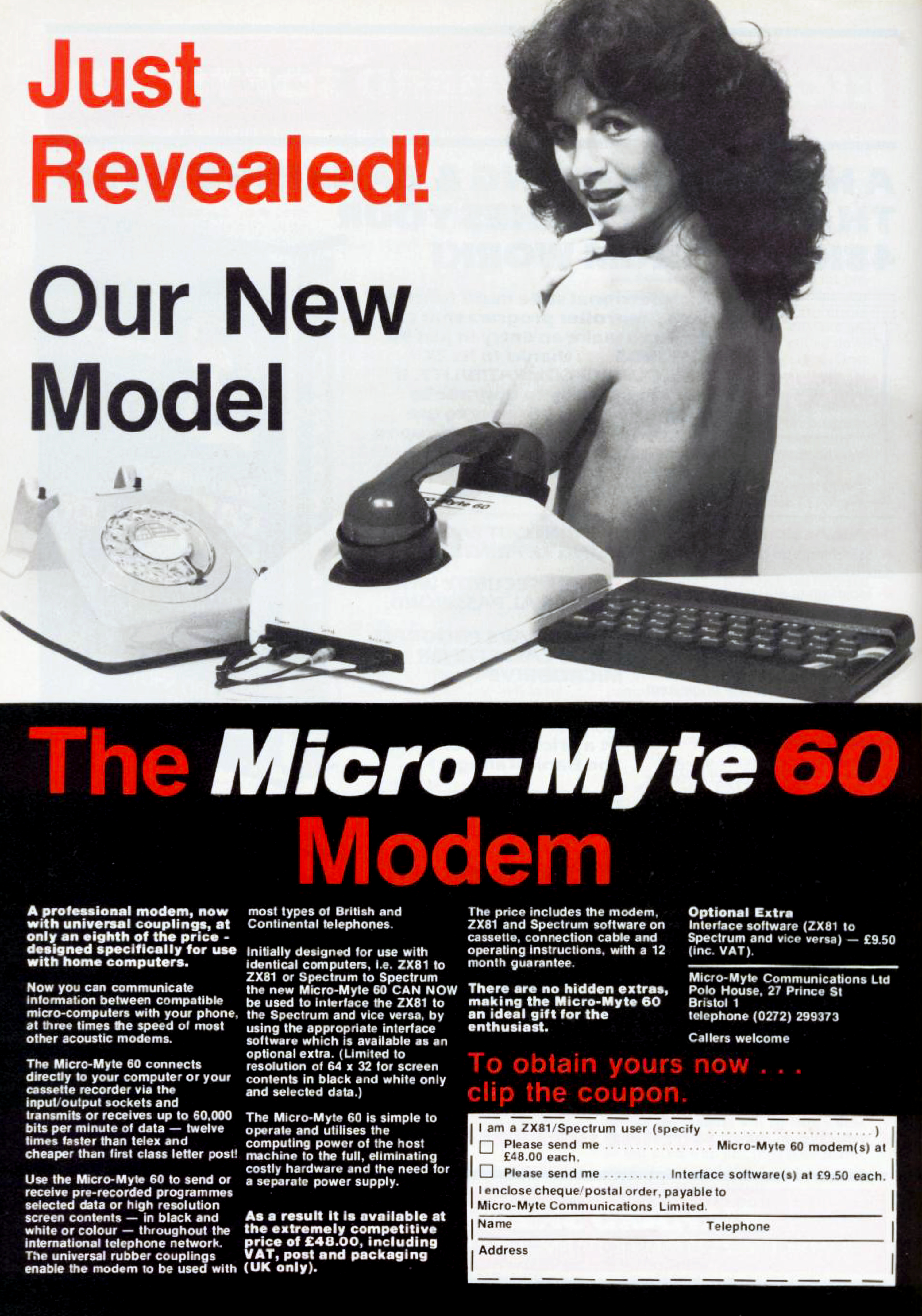 Nem tudom, mi a megdöbbentőbb: hogy 1983 végén már netre lehetett kötni a ZX Spectrumot, vagy az, hogy ezt is hetyke mezítelenkedéssel próbálták eladni.
