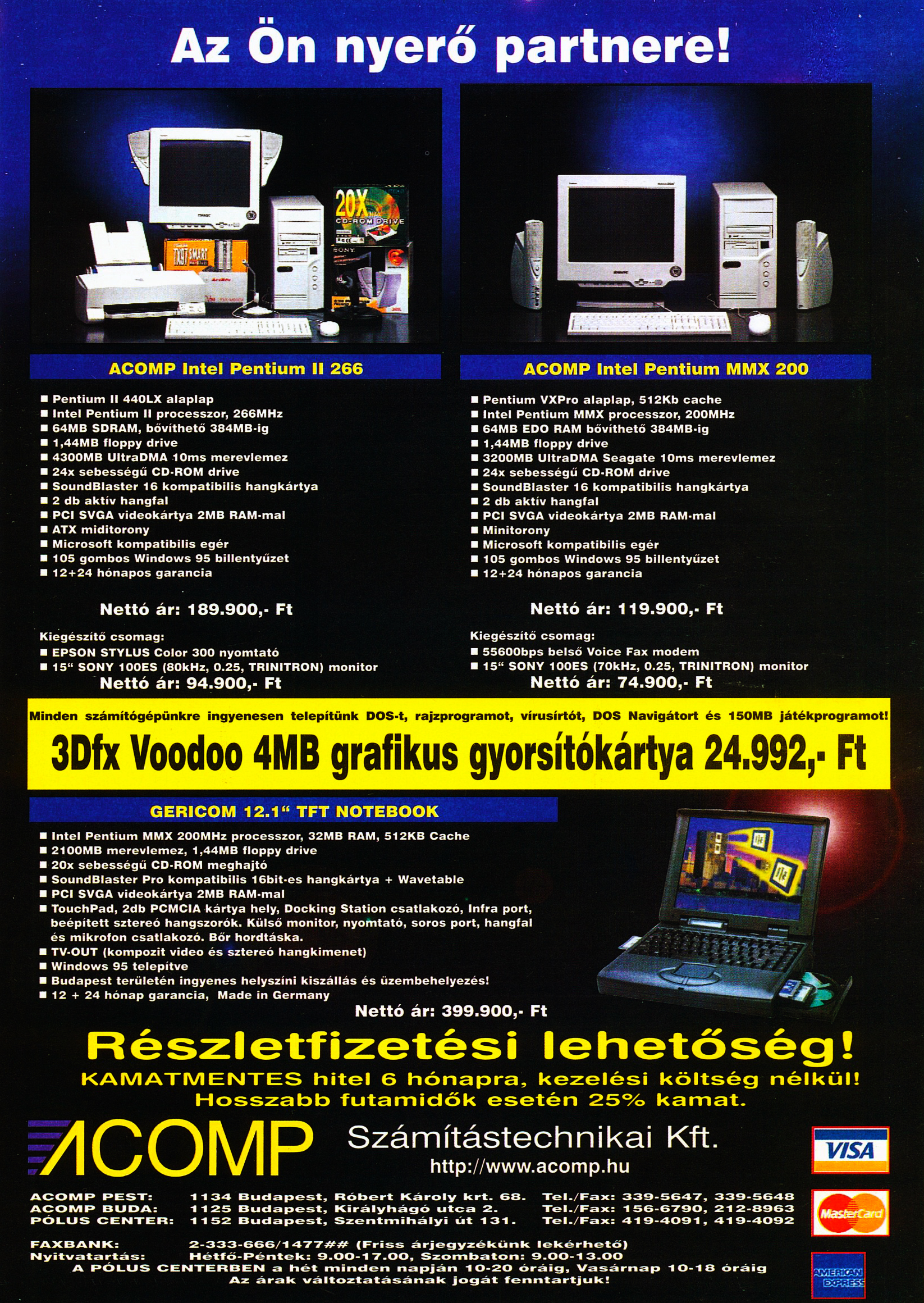 Előbbibe azonban nem az elsőgenerációs 3dfx-kártyákat, hanem az 1998 februárjában megjelent, és akkor nyilván aranyáron mért Voodoo2-t áhította a szív, hiszen azon futott igazán jól a Half-Life és az Unreal.