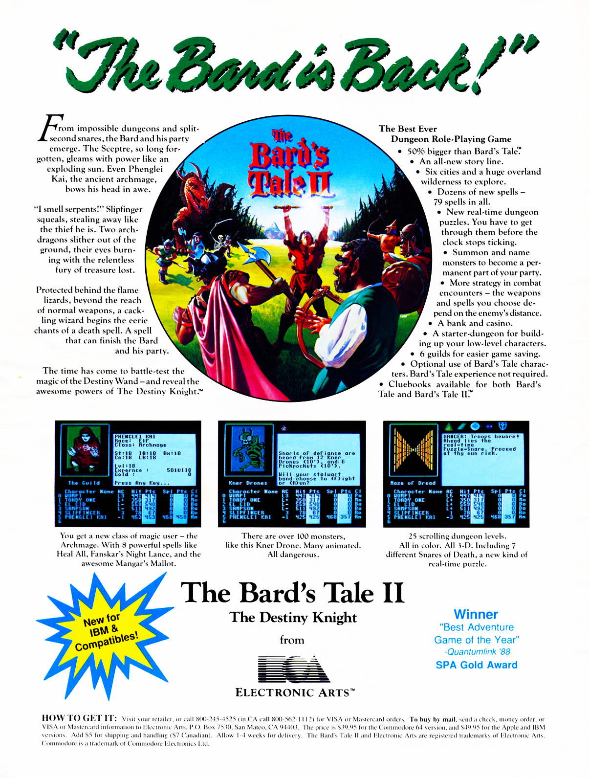 Bár a Bard’s Tale II sosem volt a kedvencem, ez egy kifejezetten hangulatos, pofás és informatív hirdetés lett – annak ellenére is, hogy nagyon úgy tűnik, azok ott bizony a képernyő lefotózásával készített screenshotok.