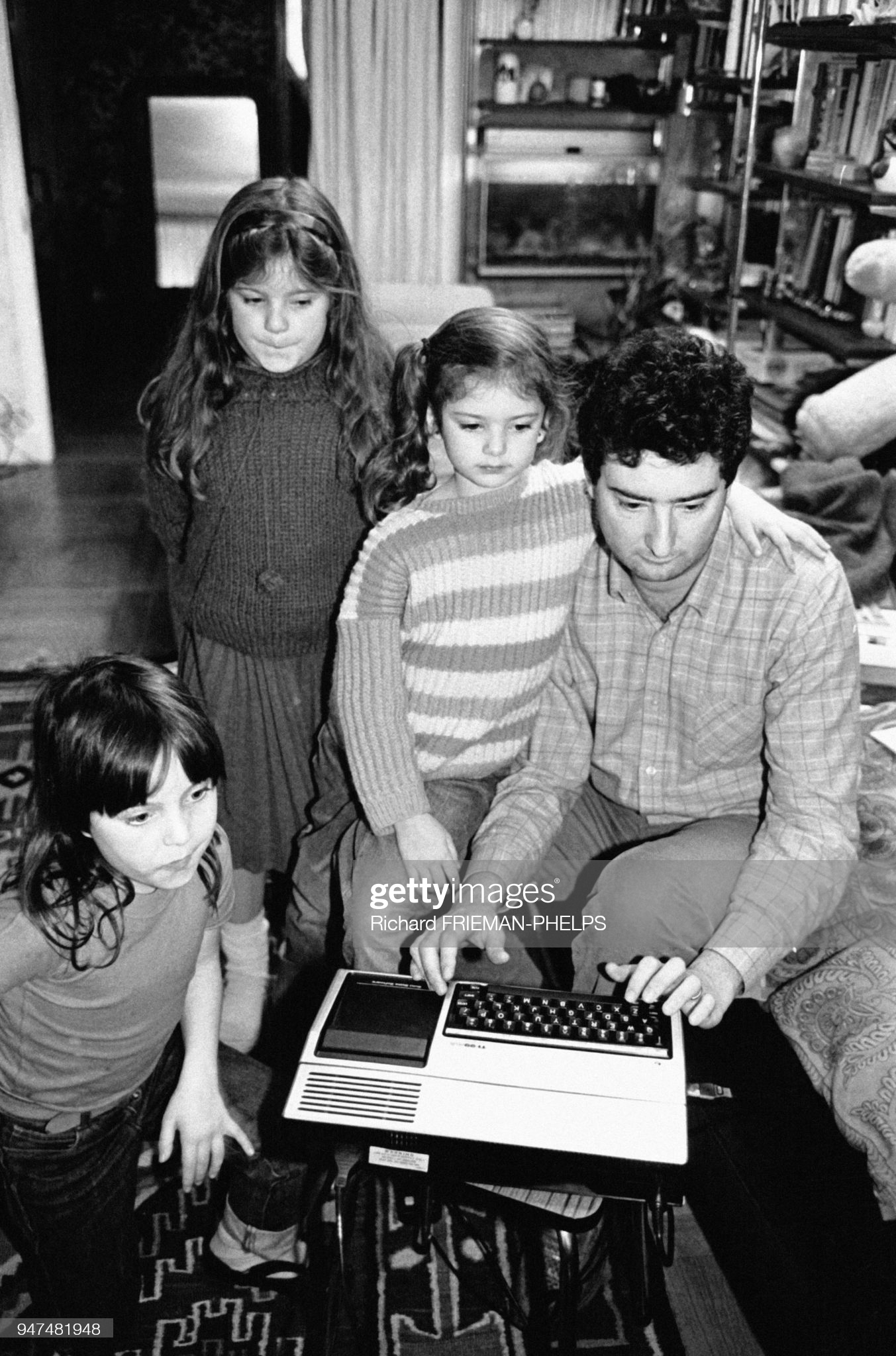 A gyerkőcök megilletődött csendben várják, hogy a feladat súlya alatt megroppanni látszó apuka életet leheljen a frissen vásárolt TI-99/4A számítógépbe.