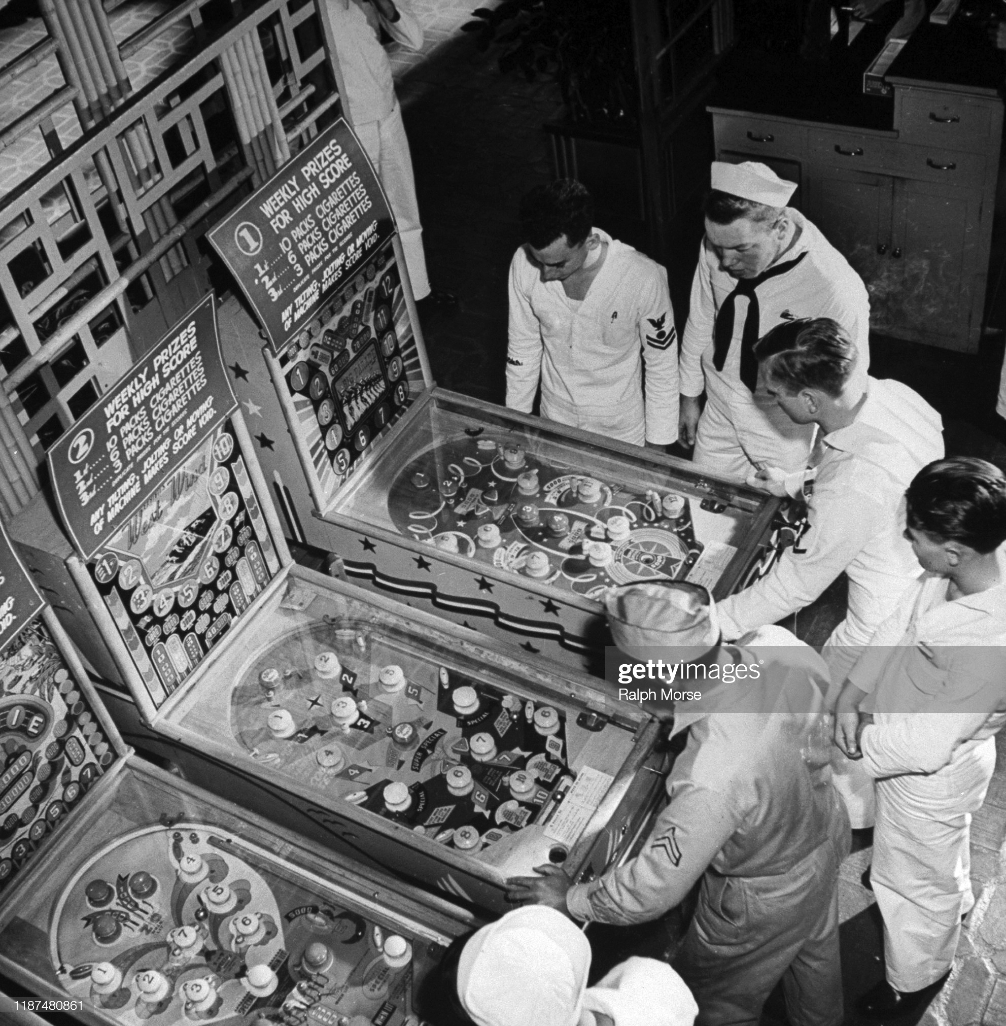 Néhány hónappal járunk a Pearl Harbort ért japán légitámadás után, és a meg nem nevezett hawaii tengerészeti bázison az urak aggódás helyett a kantinban cigiért flippereznek. Ahogy a felirat írja, a lökdösés ekkor még illegális volt; és ahogy az asztalokon látszik, ez még a flipperkaros pinballok előtti időszak volt, amikor a reménykedésen túl sok mást nem tehetett a játékos a golyó kilövését követően a magas pontszámért.
