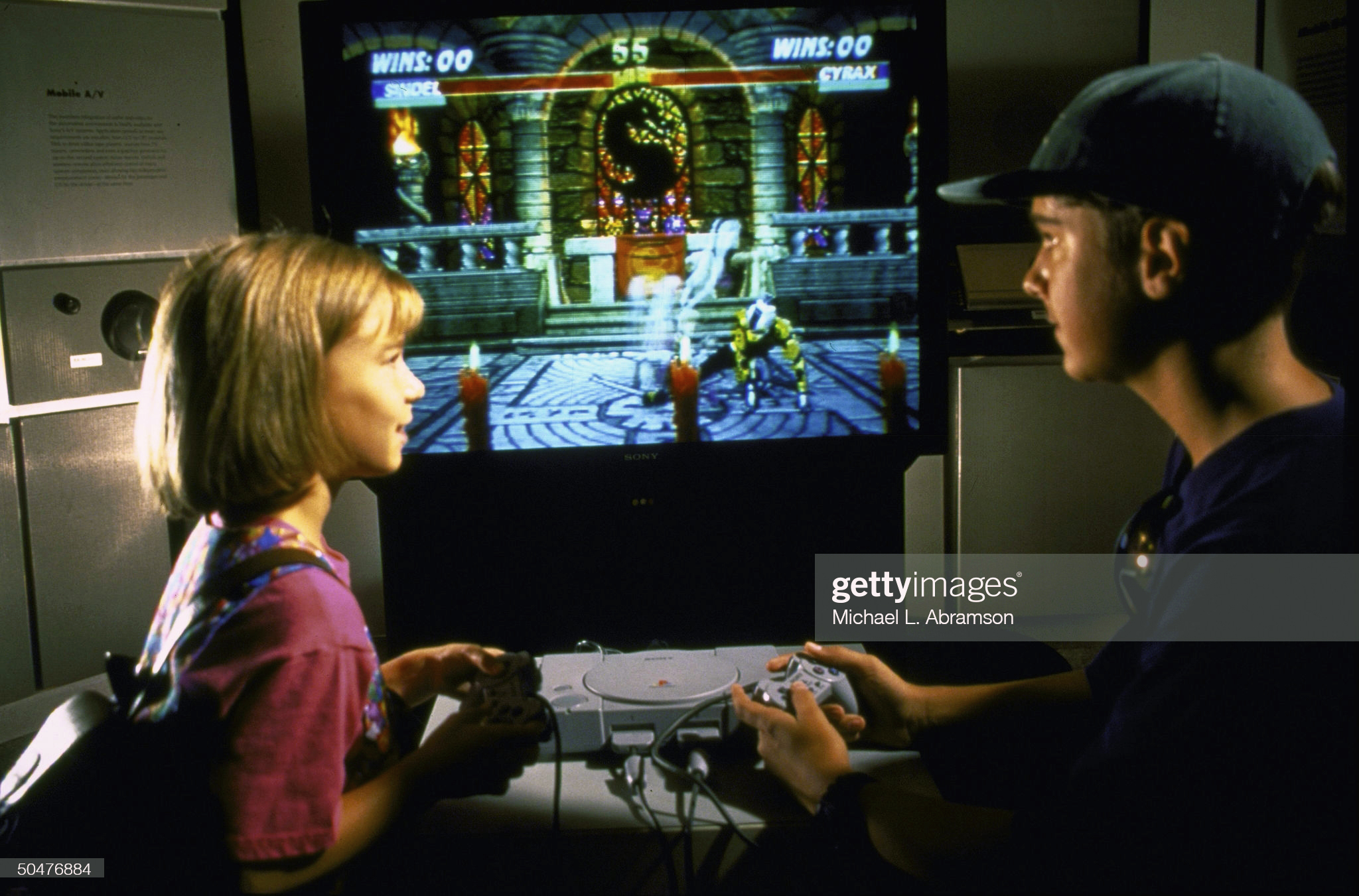 „Két fiatal a Doom számítógépes játék PlayStation-verziójával játszik”, állítja e képről a rangos Getty Images sajtófotó-gyűjtemény hivatalos leírása, és hát kik vagyunk mi, hogy belekössünk a nagyok munkájába...