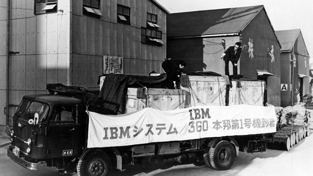 1965, megérkezik Japánba, pontosabban a Tokai Bank nagoyai központjába az első IBM System/360 mainframe rendszer. Japán a számítógép-használat terén ekkor jó  évtizeddel volt lemaradva az amerikai állapotokhoz képest: ebben a bankban például egészen eddig az erre tartott légiónyi alkalmazott abakuszokon számolta ki a kamatokat, a számlaadatok nyilvántartása pedig több millió lyukkártya segítségével történt.