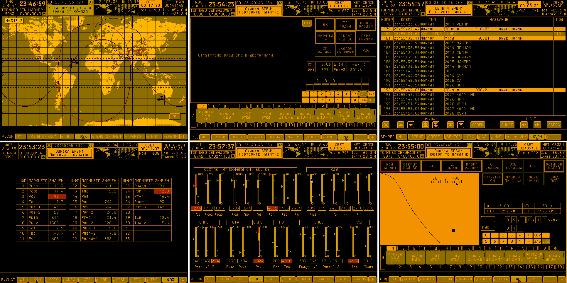 Egy jótét lélek pár éve megosztotta a nagyvilággal azt az oktatóprogramot, amellyel a szovjet, majd az orosz űrprogram során gyakoroltak az asztronauta-tanoncok. Ez kinézetében és funkcióit tekintve azonos az „igazi” programmal, csak persze a gombnyomásokat itt nem követi valódi katasztrófa. A letölthető verzió 2002-es dátumozású, és tökéletesen fut DOSBox alatt; de ha valódi hardveren próbálnánk ki, egy 386-ost minimum tegyünk alá!