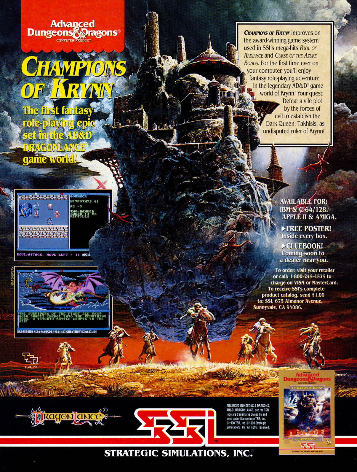 A harmadik Gold Box-játék elhagyta Forgotten Realms világát, és a rendkívül népszerű regényekkel bevezetett Krynnre, a sárkányok és az állandó háború birodalmába látogatott. A sorozat szomorú hagyományaitól eltérően ezúttal kifejezetten a játékhoz készült festmény díszítette a borítót és a hirdetéseket: Keith Parkinson remek munkát végzett a játékban szereplő egyik repülő erőd papírra álmodásával. (A képen amúgy némileg elrejtve Dr. Who és a TARDIS is megjelennek.)