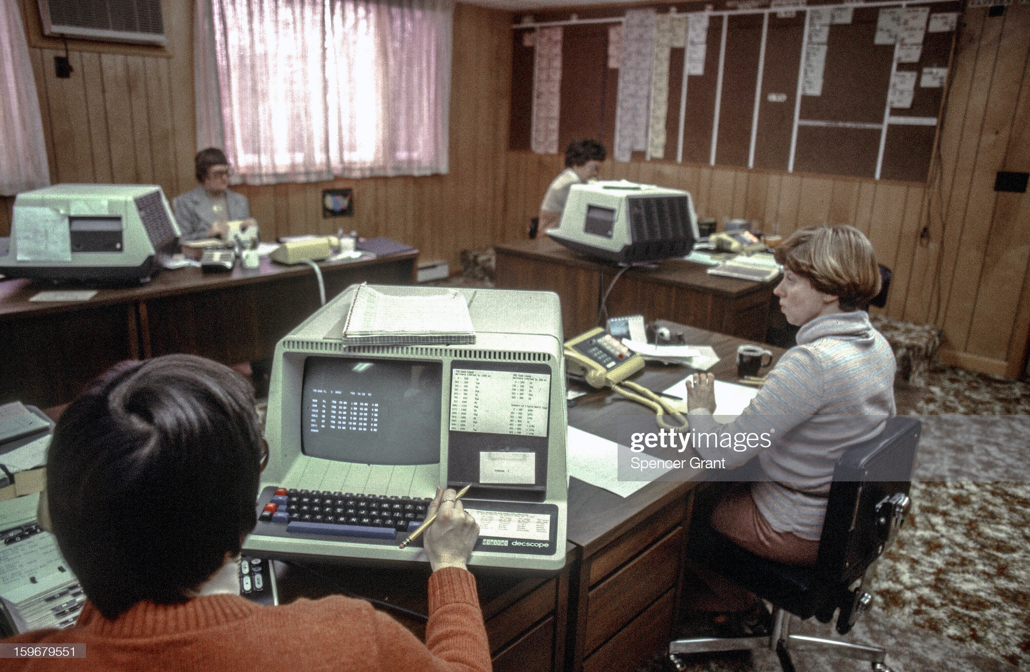 Bár idehaza valószínűleg eszelős fényűzésnek számított volna 1981-ben, ha egy irodában három teljes számítógép is üzemel, ez a bostoni biztosítótársaság nem volt a modernitás éllovasa. Az asztalokon a néha DECscope, másszor DEC VT50 néven ismert terminálok láthatók, melyek második generációs változata, a VT52 már 1975 végén (!) kapható volt. A legfőbb különbség a monitorban érhető tetten: a régebbi kijelző 12 sorban csak nagybetűket tudott kirajzolni, az újabb készülék pedig már 24 sorra, ráadásul kisbetűkre is képes volt.