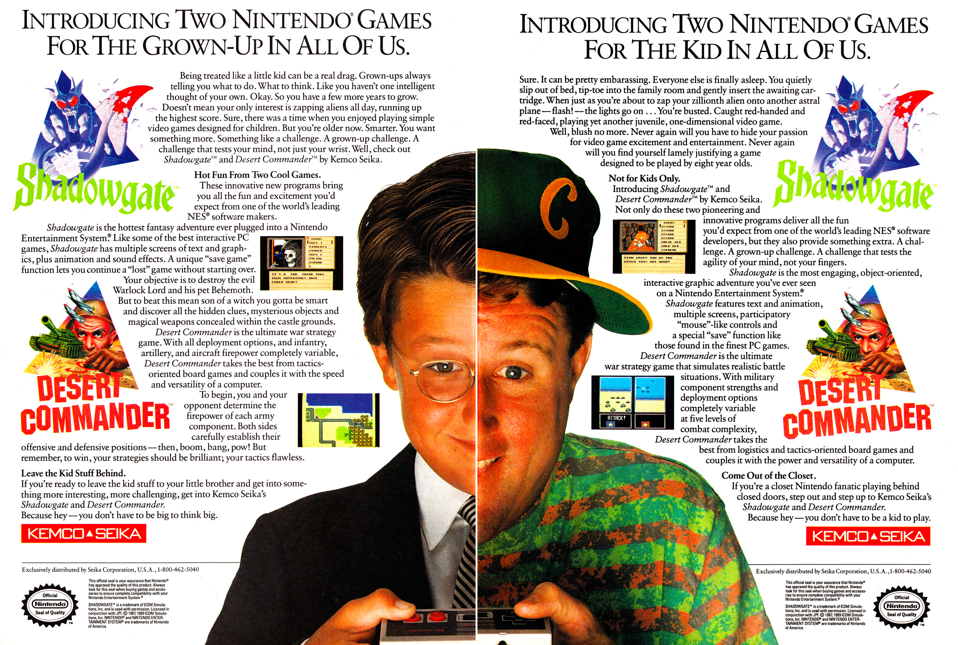 Az itt hirdetett, „felnőtteknek szóló” játékok egyike, a Desert Commander japán eredetije Patton észak-afrikai küzdelmét mutatta be Rommel német seregeivel szemben – az angol nyelvű verzióból azonban minden valós nevet (legyen az országé, tábornoké, avagy tanké) eltüntettek, mert... nos, igazából gőzöm sincs, miért. A Nintendo szabályai ezt pont nem tiltották, úgyhogy vélhetően a Seika emberei vélték úgy, hogy ez 1989-ben még a felnőtteknek is túlzás lenne. A Shadowgate-be nem nyúltak így bele, az lényegében a Macintosh-verzió kiszínezett portja volt, kiváló zenével, és a cenzorok elől valahogy elrejtett „hell” szó többszöri használatával. (Amennyire tudom, ez a bravúr csak e játéknak sikerült e korszakban.) Bár a millió akciójáték közt a Shadowgate különleges játékmenete Amerikában pozitív fogadtatást kapott, a pocsék lokalizációnak köszönhetően a játék japán verziója rendszeresen feltűnik a legrosszabb Famicom-játékok listáin.