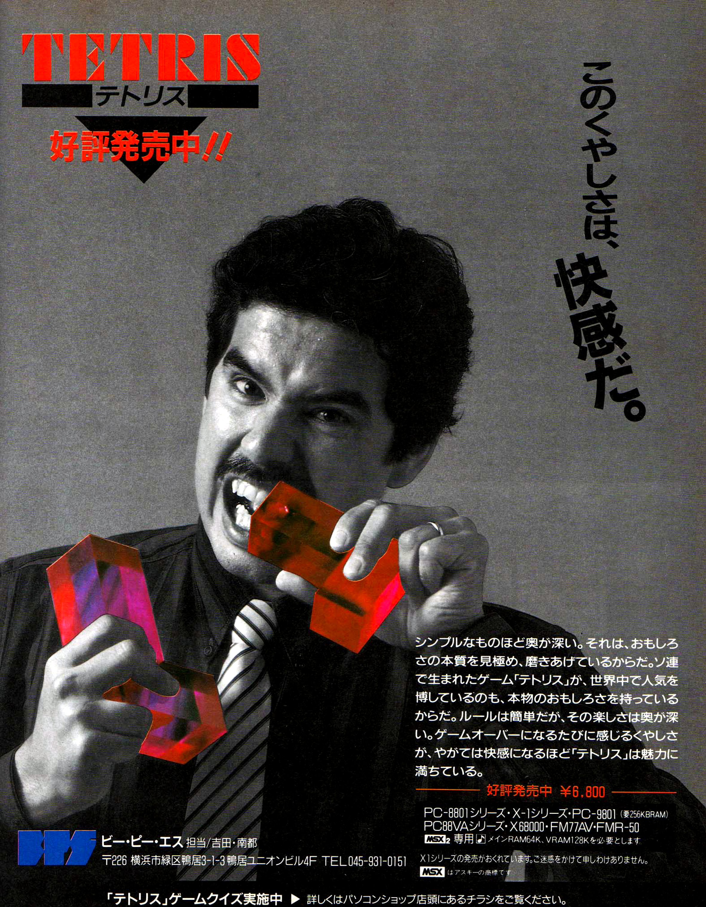Az absztrakciója miatt nehezen hirdethető Tetris számítógépes verzióit Japánban e fura reklámmal próbálták meg eladni. „A frusztráció is kellemessé válik”, mondja a szlogen, amellyel vélhetően a program addiktív mivoltára utalt a marketinges.