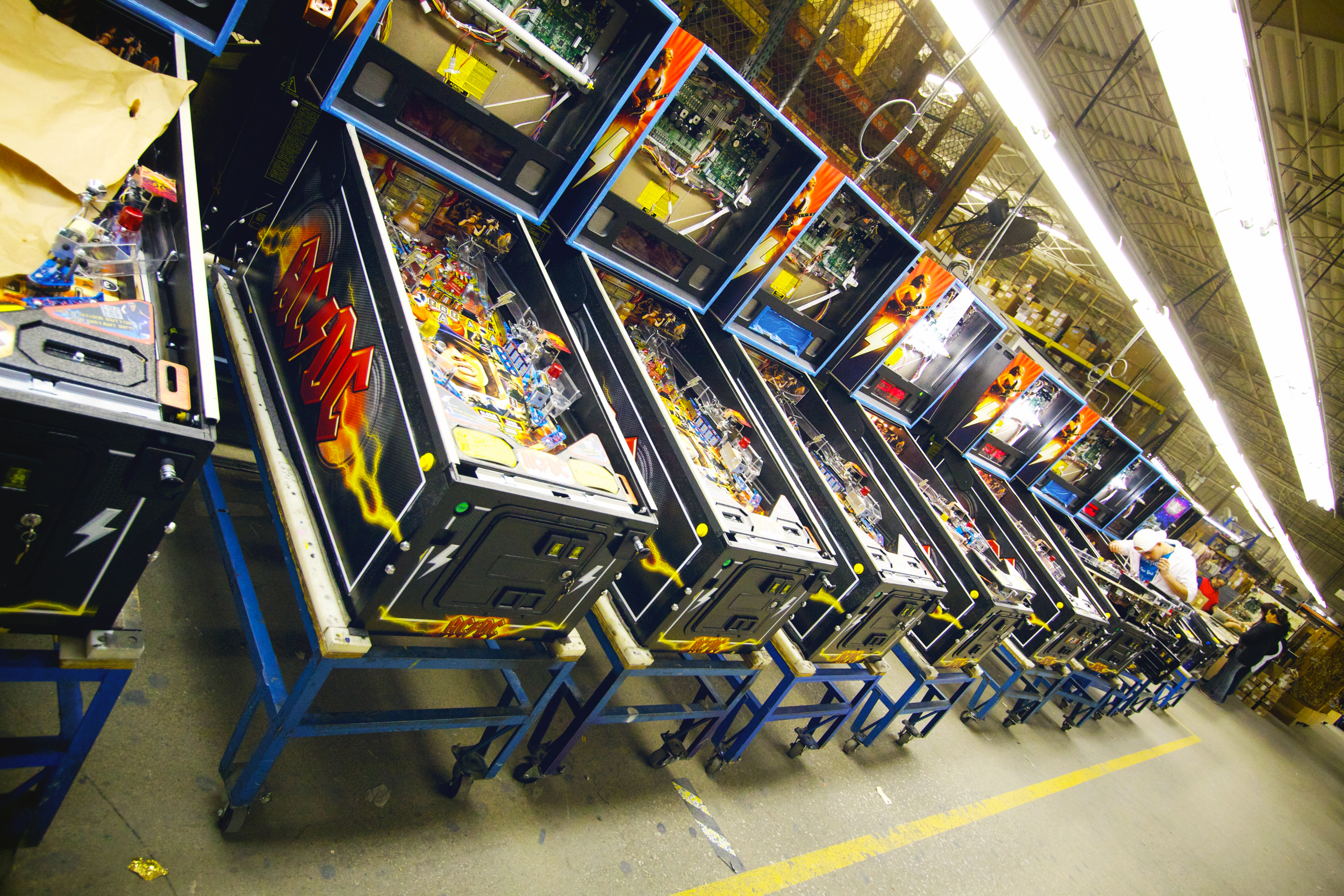 A Stern chicagói üzemében a flipperek a mai napig robotok nélkül készülnek; a gépek minden apró részletetét rutinos szerelők rakják össze. A fotó 2012-ben készült.