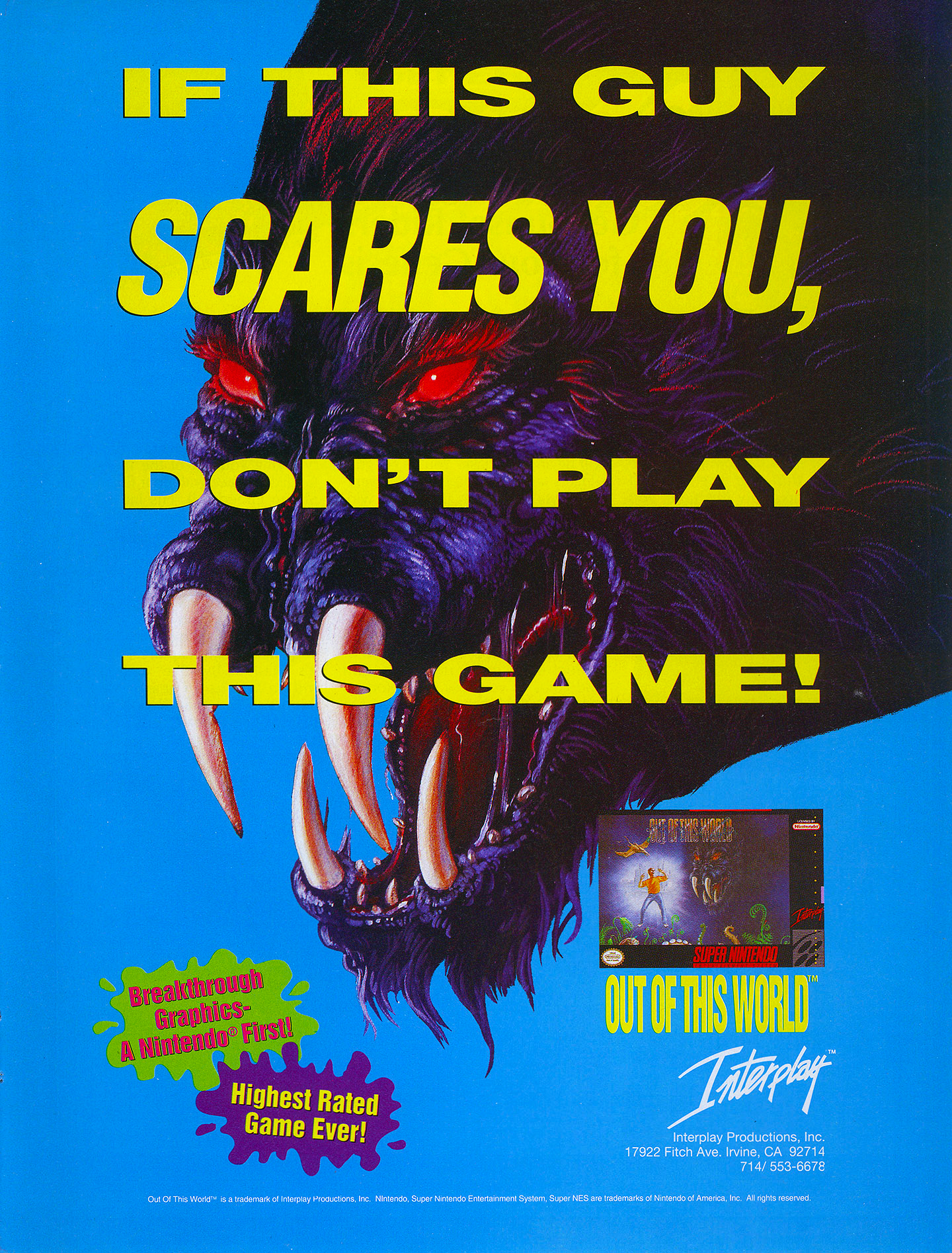 Hogy miért nem olyan közismert és közkedvelt az Another World Amerikában? Szerintem azért, mert a kiadó Interplay teljesen félreértette a játék szellemiségét, stílusát és hangulatát, és azt valami horrorisztikus akcióorgiaként akarták eladni. Hogy a címet ehhez miért kellett lecserélni, azt én sem értem, de a játék minden amerikai reklámja és dobozképe ezekre a lényeges szereppel nem rendelkező szörnyekre koncentrált.