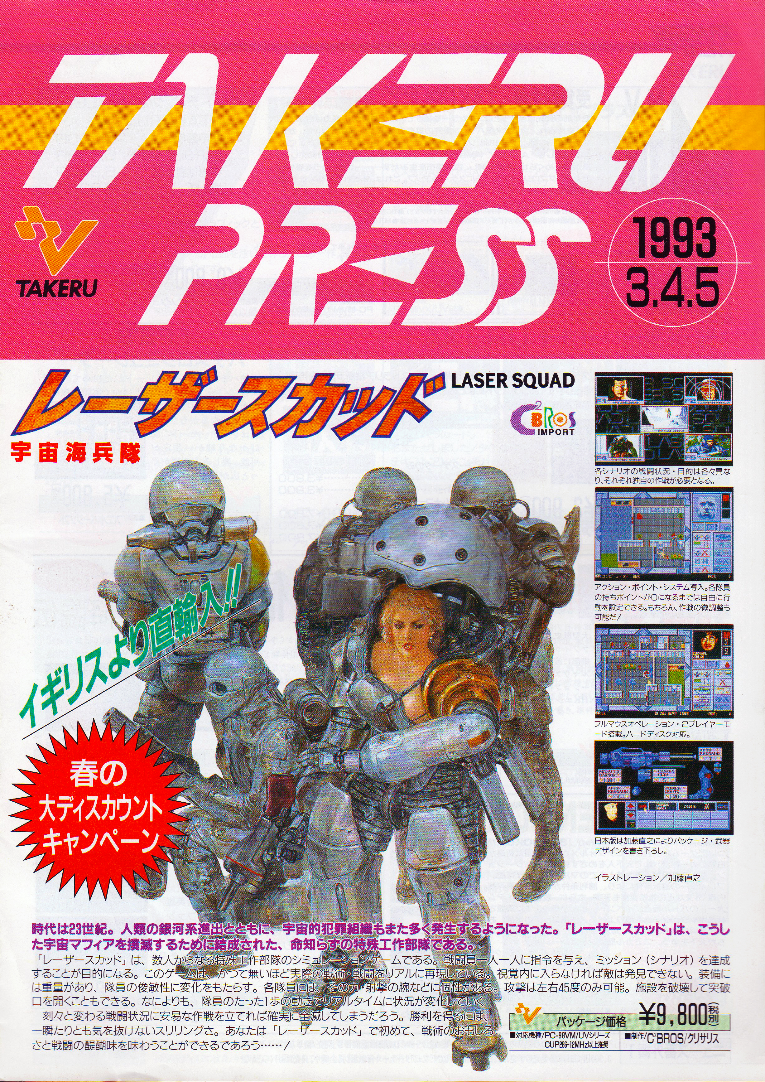 Korábban már volt szó a Takeru videojáték-automatáiról, és most ismét erről lesz szó. Egész pontosan a csak e gépeken keresztül terjesztett Laser Squad japán verziójáról, amely ugyan változatlan formában került át PC-98-ra, viszont Naiyuki Katou segítségével elképesztően jó új csomagolást és designt kapott.