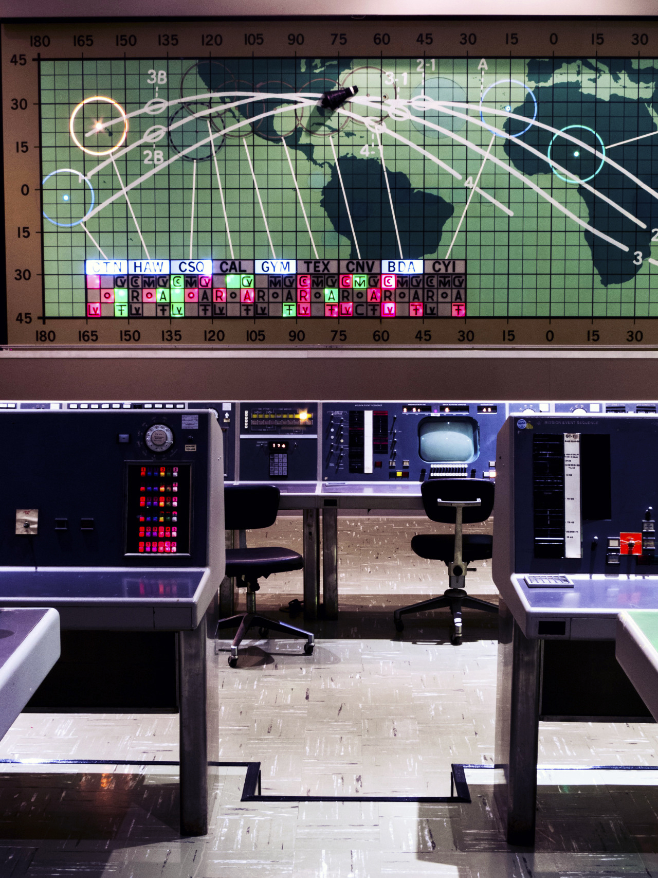 A NASA irányítóközpontja, ahonnan a Mercury űrmissziókat (és az első Gemini-kalandot) vezérelték. A későbbi NASA parancsnoki termekhez képest ez a szoba még viszonylag apró volt, és persze a felszerelés is csak akkori szemmel volt impresszív.