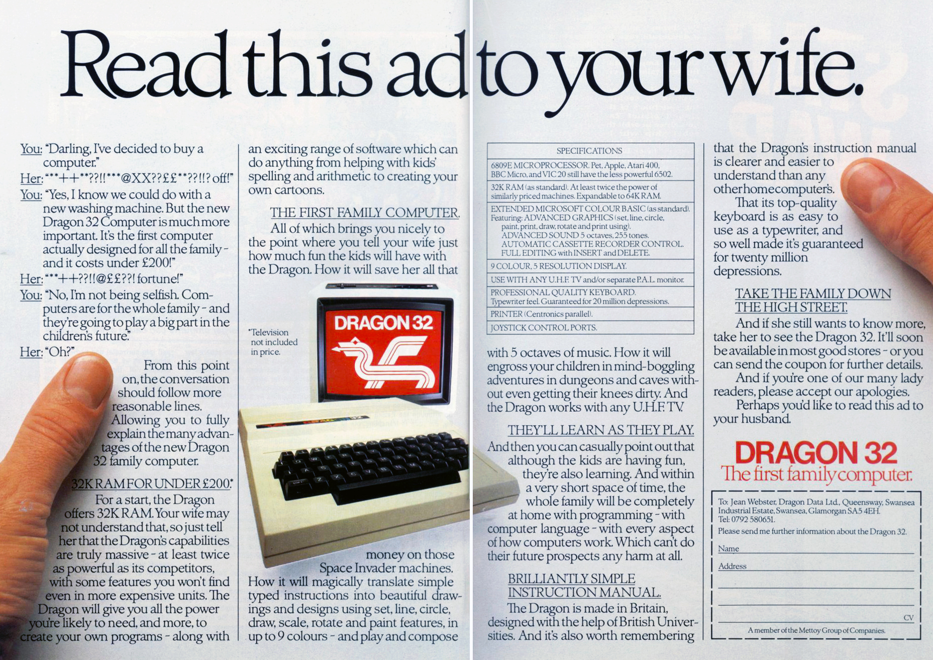 A Dragon 32 a francia piacot leszámítva sehol nem lett még csak visszafogottan sikeres sem, így feltehetőleg ez a furcsa hálószobai szerepjátékozással egybekötött hirdetés nem érte el elvárt hatását. Lehet, meg kellett volna mutatni a hivatalos újság első címlapját, vagy akár a remek szoftverellátottságról tanúskodó képeket is...