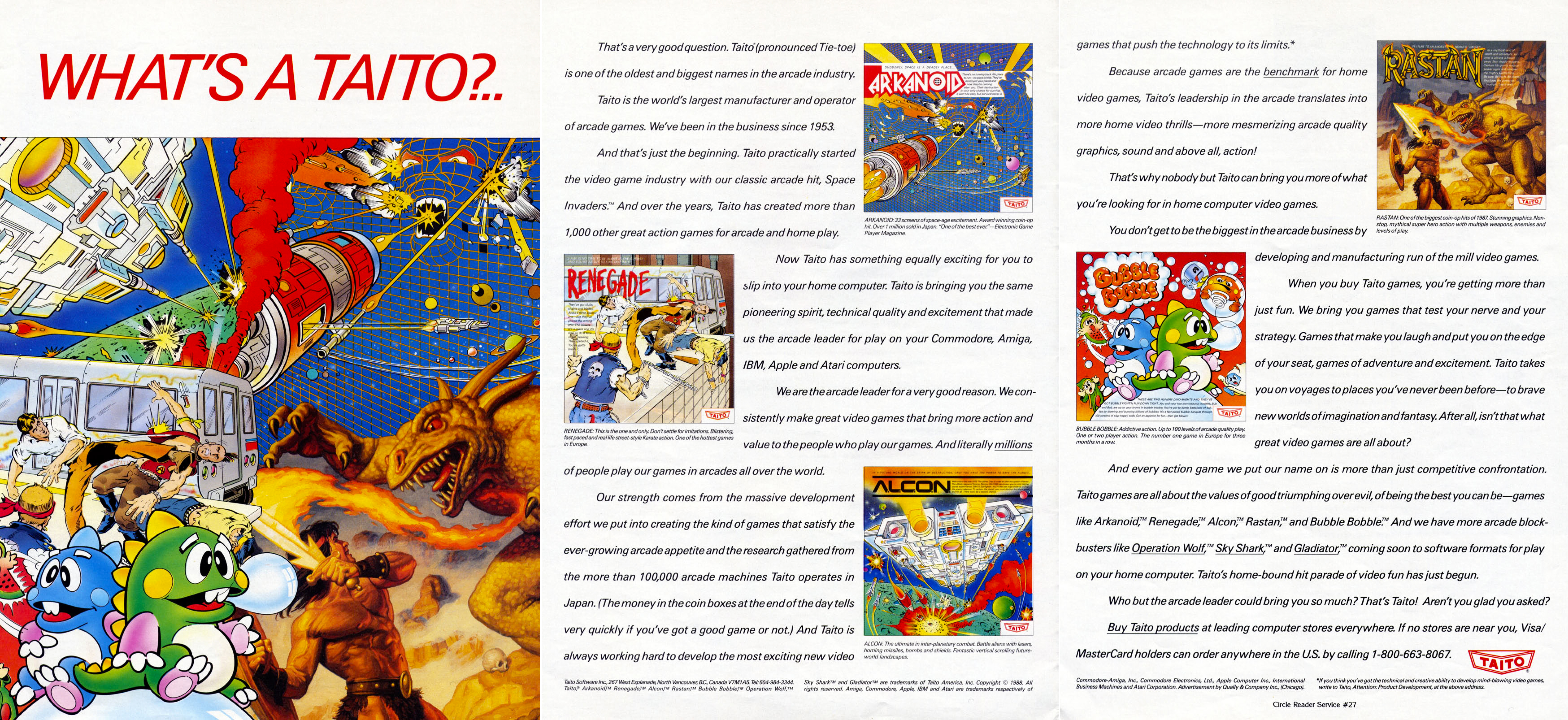 Korábban már találtam egy hirdetést, amellyel az amerikai piacra frissen belépő Taito próbálta bemutatni magát és (korábban más cégek által forgalmazott) játékait, de most rábukkantam egy még monumentálisabb, három teljes oldalt felölelő bemutatkozásra.