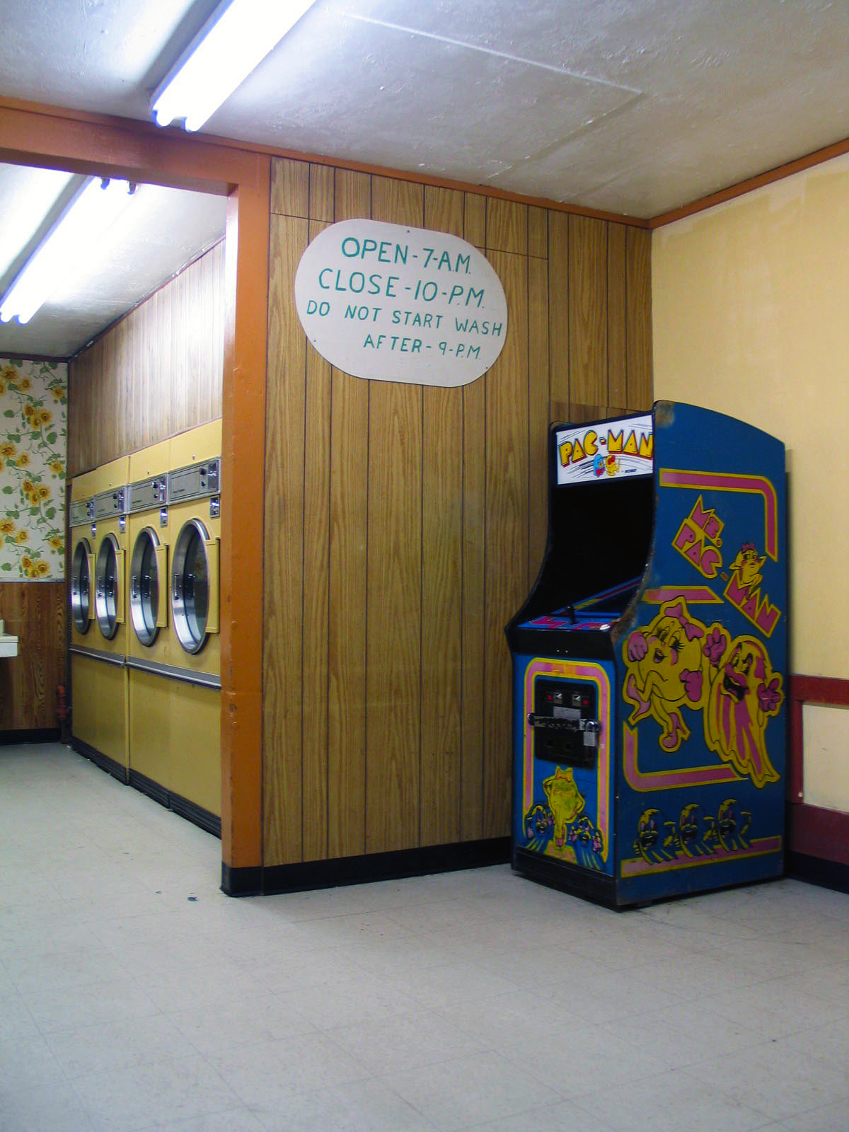 Bár Ms. Pac-Man népszerűsége mára igen sokat csökkent a nyolcvanas években tapasztalt őrülethez képest, a játékvilág matrónája ezen a 2004-es kaliforniai fényképen még változatlan kitartással várta a mosodában unatkozókat.