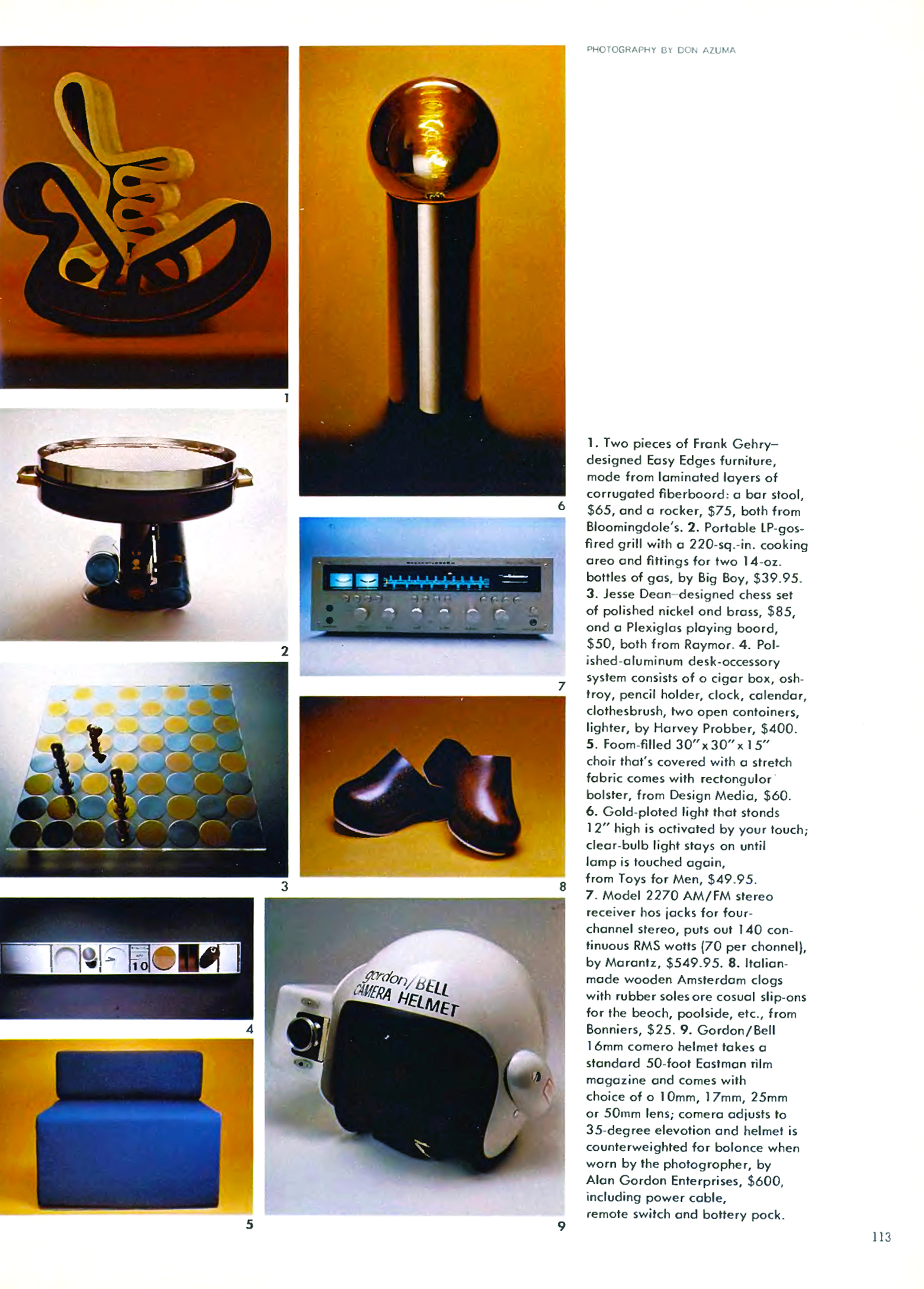 Apák napi, illetve frissen diplomát szerzőknek szánt ajándékok listája 1972-ből; a sok fura dolog mellett a jobb alsó sarokban egy GoPro-előd figyel.