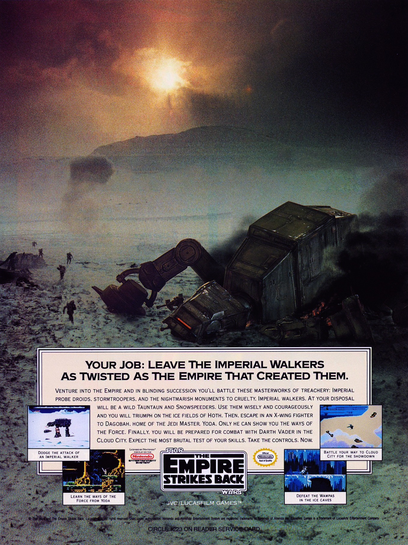 Hiába volt tényleg minősíthetetlen szemét a NES három Star Wars-feldolgozásából legalább kettő (a harmadiknak, a Namco által feltehetően ópium-álomban készített alkotásnak kijár a „minősített szemét” jelző is), legalább a hirdetésekkel és a borítókkal nem volt gond: ez az univerzum olyan ikonikus panorámák százait tartalmazza, amelyek már önmagukban is eladták a digitális hulladékot.
