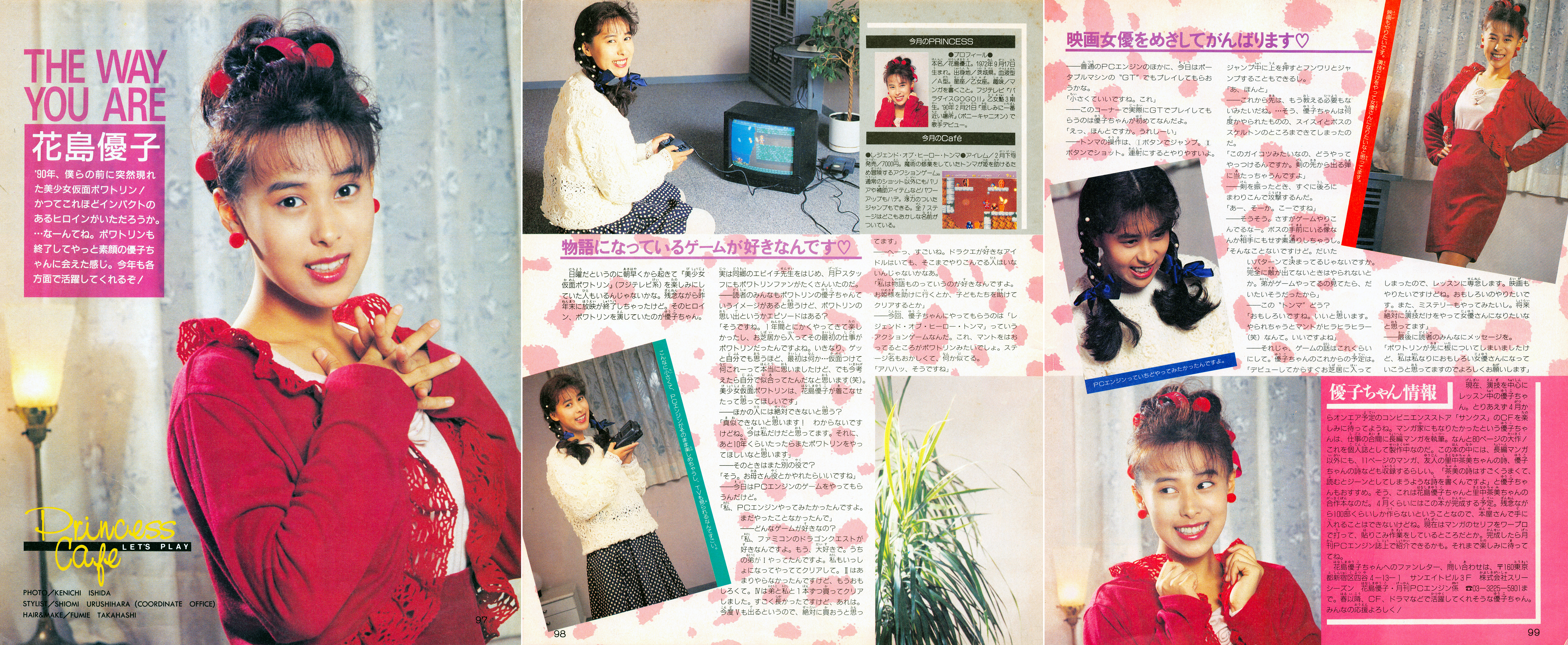 Sok hivatalos, vagyis valamelyik konzolgyártó által pénzelt játékmagazin szokása volt, hogy hónapról hónapra kerestek valami híres, netán „híres” embert, és az ő cseppet sem mesterségesen bemutatott sorsán keresztül mutatták be, hogy miért is adott gép a legjobb választás mindenki számára. Természetesen Japán ezt is saját művészeti ággá fejlesztette, és jó eséllyel az sem lep meg sokakat, hogy a PC Engine népszerűsítésére egy 19 éves színész-énekest választottak, az akkor (1991-ben) népszerű Otomejyuku zenekar harmadik generációjának talán legismertebb tagját, Hanashima Yukót. Az interjú legjobb pontja, amikor a hölgy kérdésre közli, hogy kedvenc játéka a Dragon Quest, és megkérdezi, hogy az van-e PC Enginre. Nem volt.