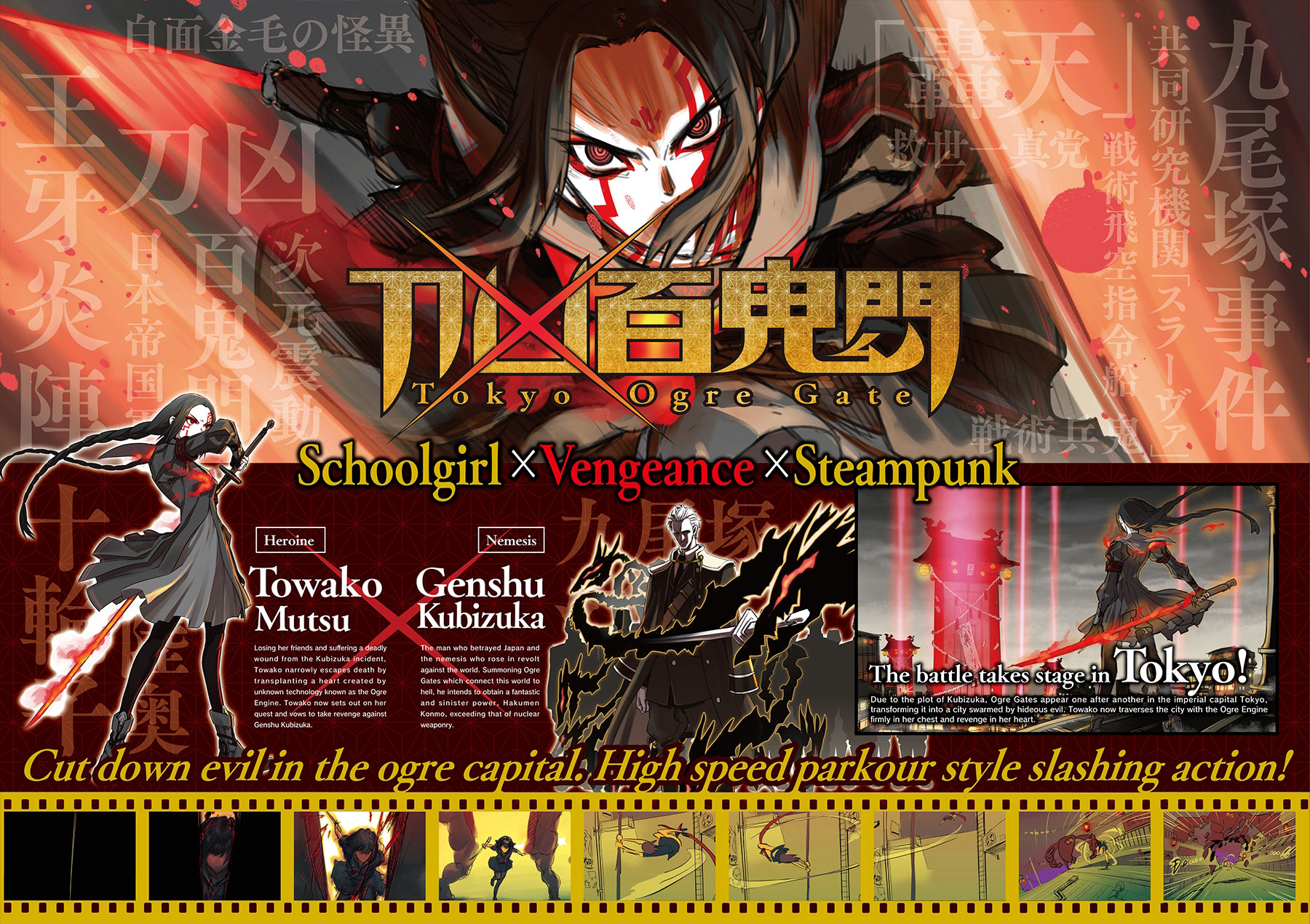 A CyberConnect2 általában más cégeknek dolgozik be szerződéses fejlesztőként, de 2018-ban bejelentettek három eredeti játékot. Noha az eredeti megjelenési dátumok már rég lejártak, és például a Tokyo Ogre Gate a mai napig nincs aktív fejlesztés alatt, ezt a remek posztert nem tudtam nem megosztani. Már a diáklány+bosszú+steampunk recept is mókás, de vegyük észre, hogy a játék hivatalos stílusbesorolása „high speed parkour style slashing action”!