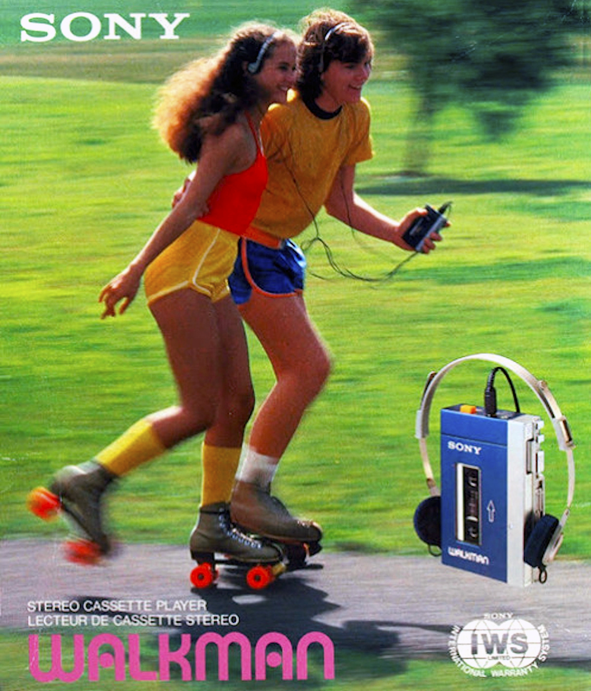 Egy 1979-es magazinhirdetés a Sonytól, amelyik a kiemelkedően sikeres TPS12 walkmant reklámozta.