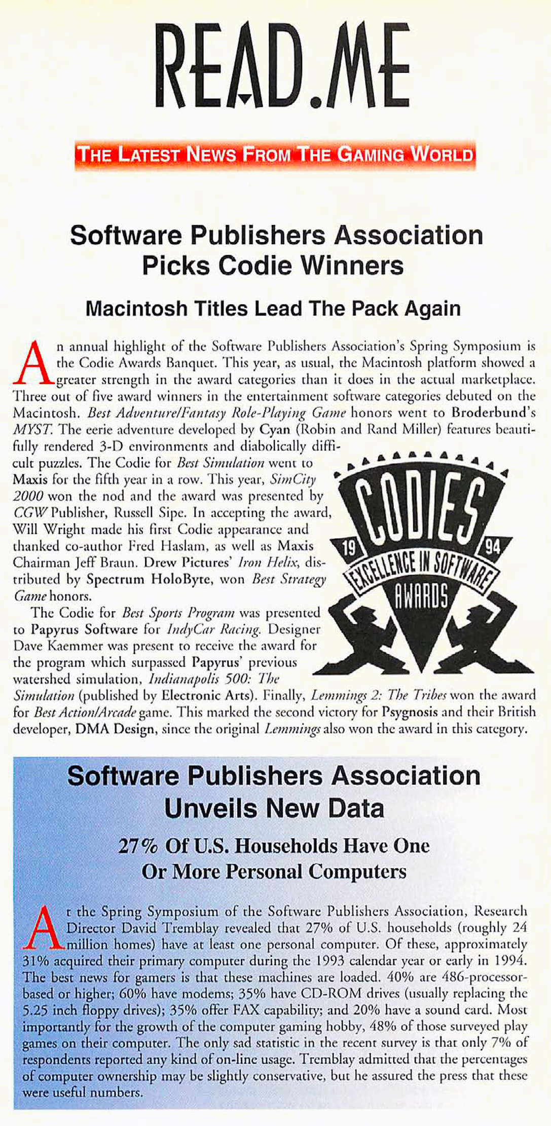 Én speciel a Myst helyére a Day of the Tentacle-t tettem volna (vagy a Sam & Maxet), a legjobb stratégiaként vagy Warlords II-t, vagy a Master of Oriont díjaztam volna, és az is egészen biztos, hogy a Doom sem maradt volna trófea nélkül. Vagy a Lands of Lore. Meg az X-Wing. Esetleg a Syndicate.