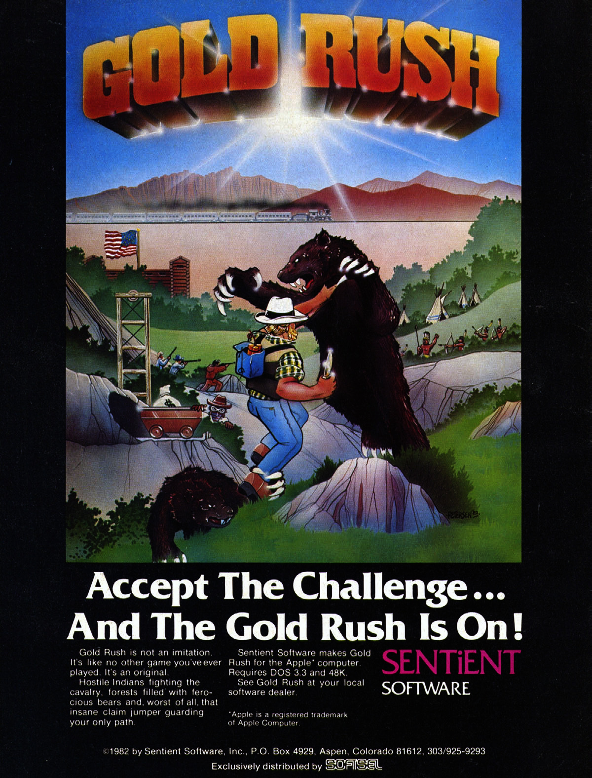 Az ok, amiért a Sierra aranyláz-témájú point ’n’ click kalandjátéka a Gold Rush! címet kapta: a felkiáltójel nélküli verziót még 1982-ben levédette a Sentient Software. E programban aranybányákat kellett a dinamitozás precíz művelete útján kifosztani, de katonák, őslakosok és medvék is nehezítették parányi karakterünk életét.