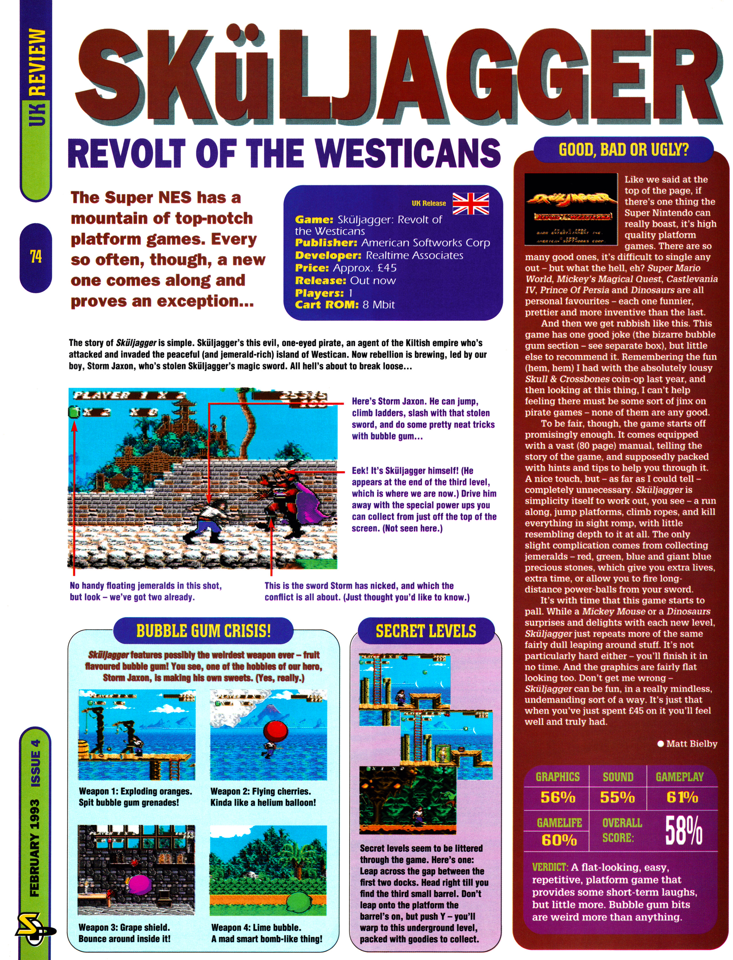 Hogy milyen ritka volt az olyan konzoljáték, amelynek címében szerepelt egy Ü betű is, azt kiválóan mutatja szegény Super Play magazin nyomdász-rémálomba illő fontkezelése is.