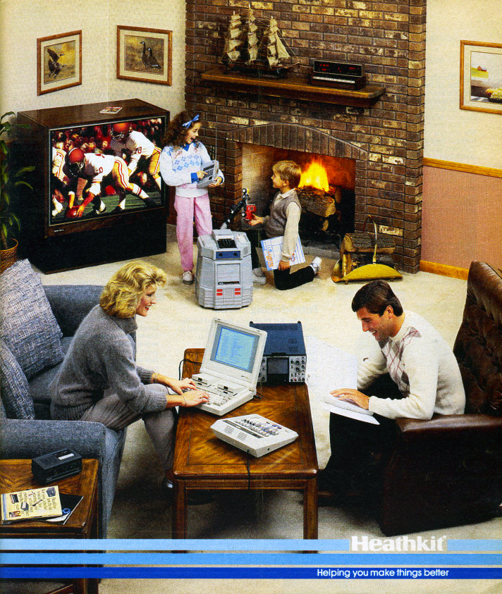 Heathkit robot, Heathkit tévé, Heathkit számítógépek, Heathkit rádió és Heathkit... izé; legalábbis arra nincs megfejtésem, hogy az asztal jobb felső sarkában mi is látható.