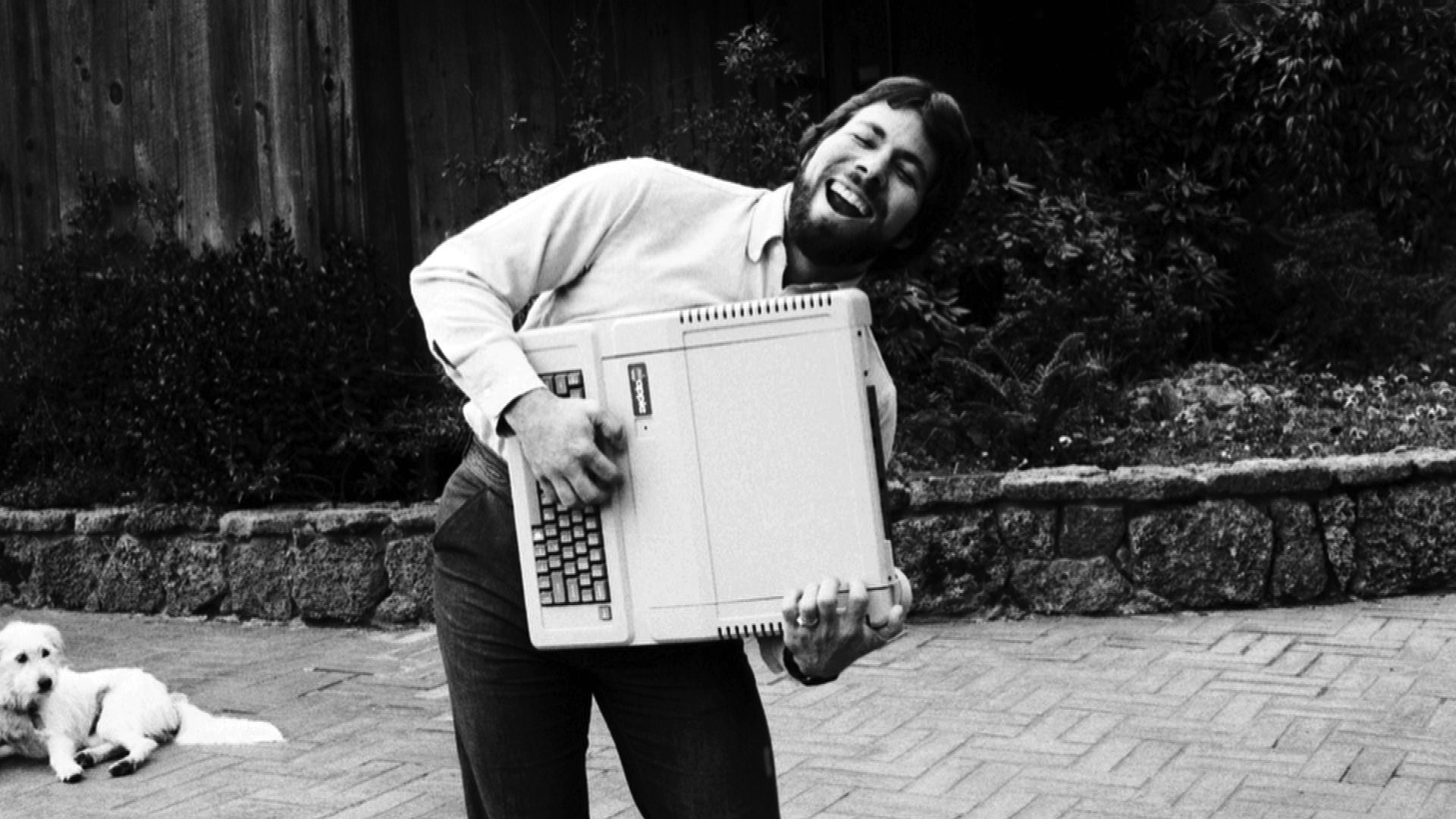 Steve Wozniak szólózik egyet egy elsőgenerációs Apple II számítógéppel, feltehetően 1977 nyarán, a gép hivatalos premierje körüli napokban.
