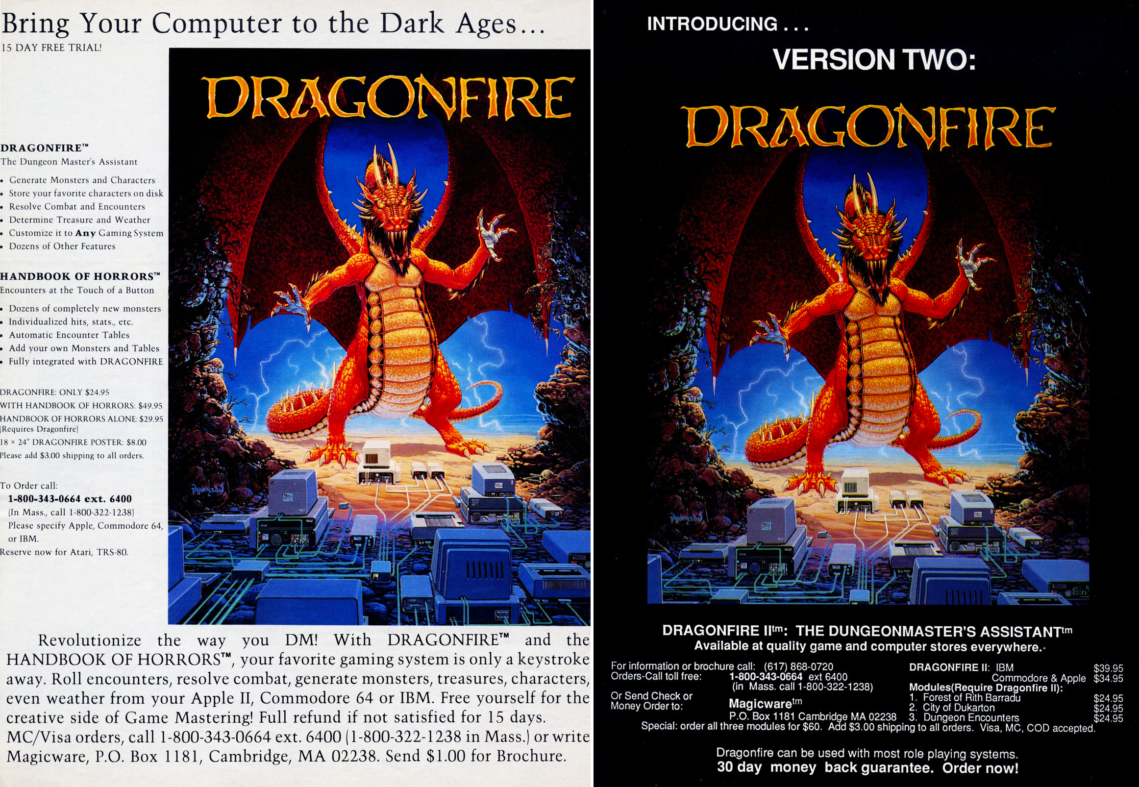 Nem feltétlenül fair dolog egy picit kibővített verziót második résznek nevezni, de az apró Magicware kiadót 1985-ben nem gyötörték ezzel kapcsolatos aggályok – a Dragonfire „folytatása” így még eltérő borítót sem kapott. Nem klasszikus RPG-ről van szó egyébként, hanem egy, a papír-kocka szerepjátékok mesélőinek szánt felhasználói programról: a Dragonfire segítségével random táblázatokat lehetett előre elkészíteni, majd játék közben a szoftver arról sorsolta ki a kincseket vagy a szörnyeket. Bár ez talán jól hangzik, vegyük észre a cselt: a szoftver nem tartalmazott alapból ilyen randomtáblákat, azokat mindenestül a felhasználónak kellett begépelnie. A program lényegében csak a papírt és a kockadobást váltotta ki igen sok munkával, 40 dollárért...