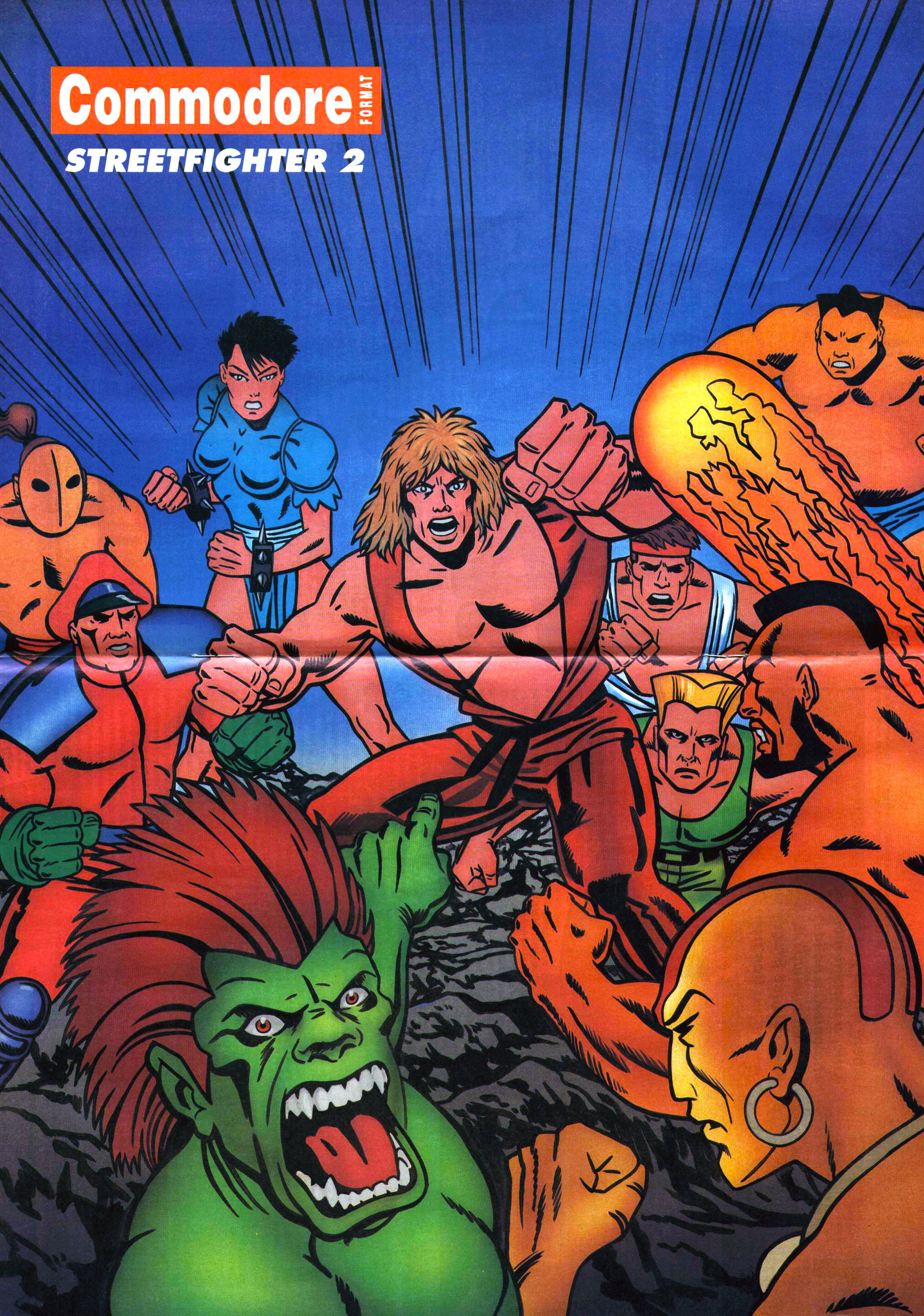 Mi történik, ha a nem lehet hivatalos artworköt szerezni a Street Fighter II számítógépes verzióit ünneplő poszterhez? A hitványabb lelkek feladják a dolgot, és valami más, közel sem ilyen népszerű programhoz nyúlnak, de a brit Commodore Format szerkesztőit nem ilyen ócska anyagból faragták. Nem, ők leültek, és egyikük óvodás gyermekének telefonon hadarva elmondták, hogy mit is szeretnének látni a rajzlapon! A végeredményen meglehetősen sok érdekes dologra bukkanhat rá a figyelmes szemlélő, ebben a pillanatban a kedvencem éppen a miniatürizált Guile, de volt már olyan is, amikor Vega gyurma-felsőteste láttán kacarásztam sírásig.