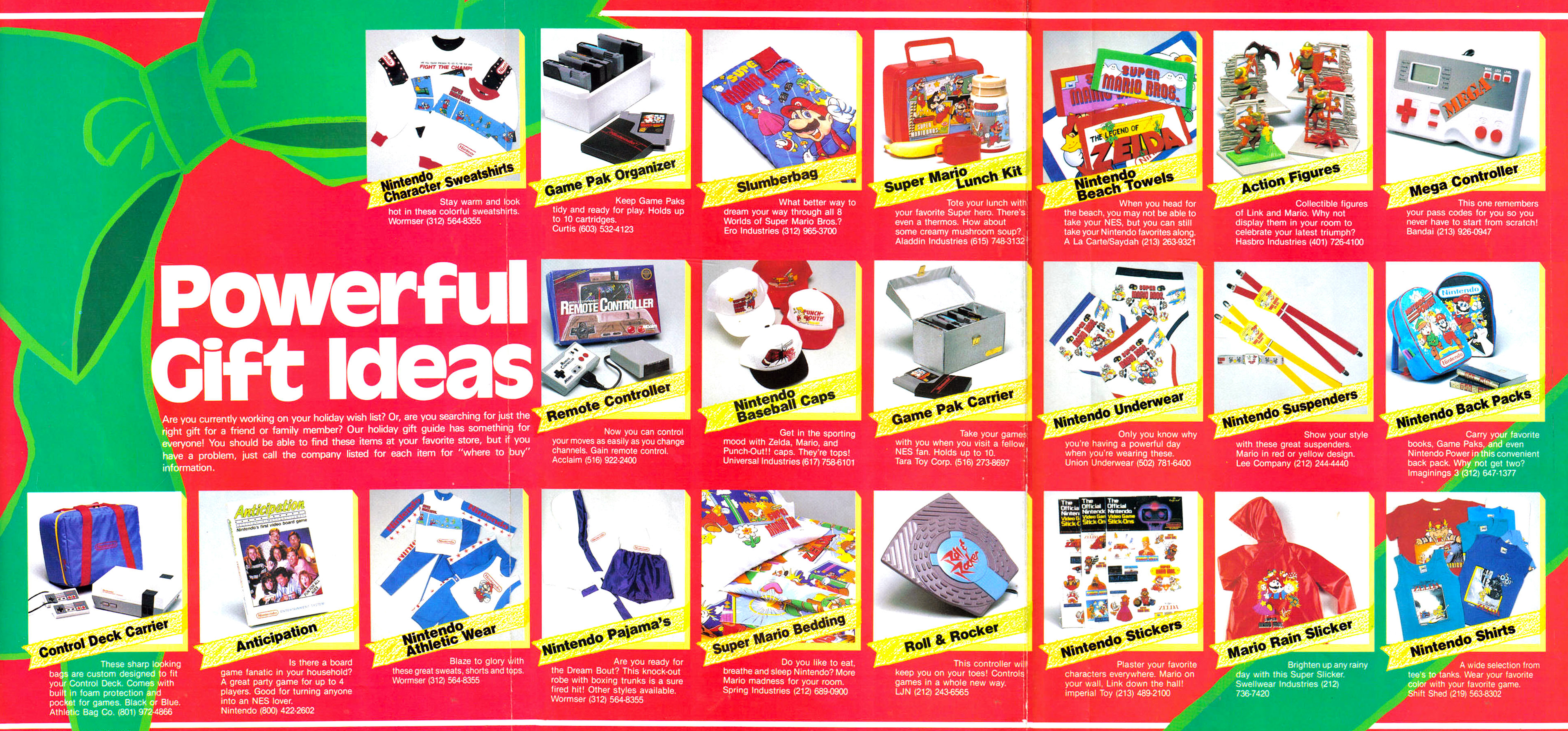 1988 karácsonyára ezeket a „kincseket” javasolta a szimpla játékokon túl ajándéknak a Nintendo Power magazin. Nem mondom, egy igazi, nintendós hózentróger még ma is jól jönne...