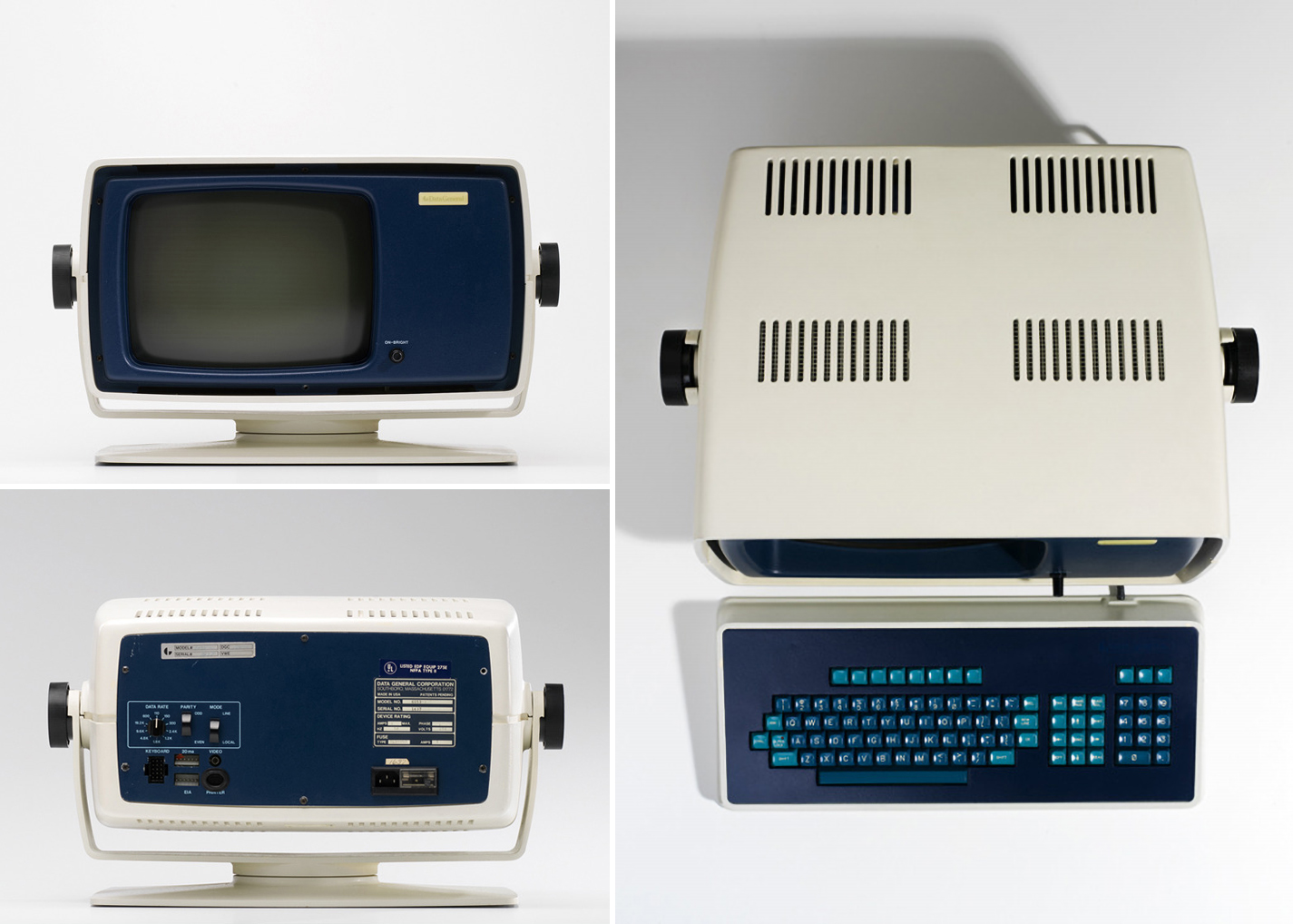 A Data General által 1977-ben kiadott, a cég Nova típusú mainframe rendszereinek irányítására szolgáló Dasher D2 terminál. Gyönyörű kék designja ellenére a kijelző a kor szokásainak megfelelően monokróm volt.